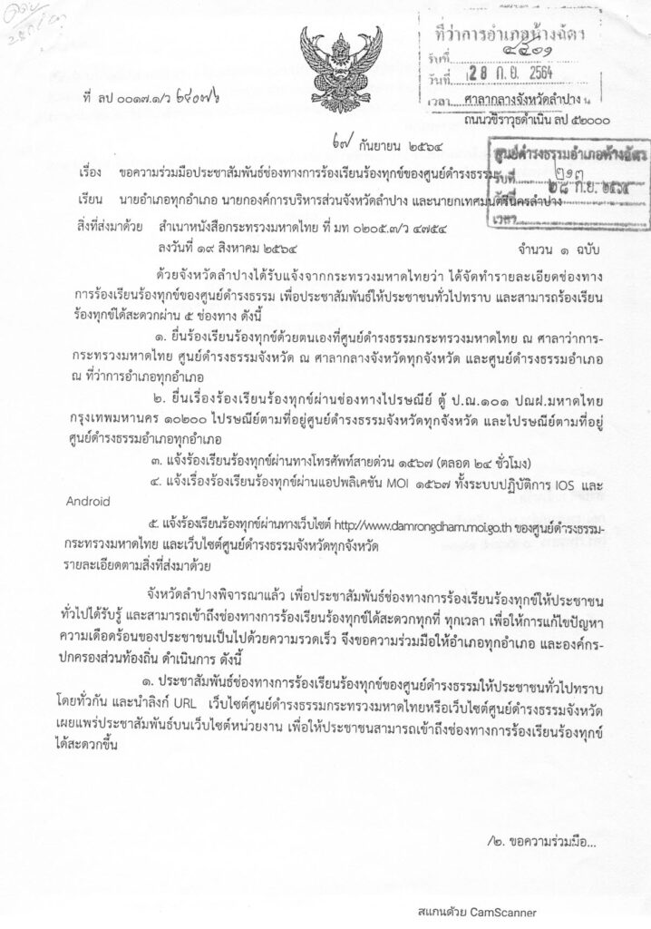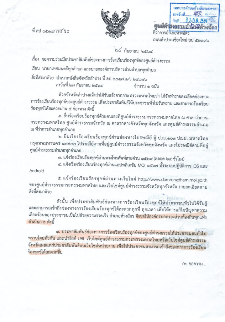 ศูนย์ดำรงธรรม อำเภอห้างฉัตร ขอความร่วมมือประชาสัมพันธ์ช่องทางการร้องเรียนร้องทุกข์ของศูนย์ดำรงธรรม 0 Share FacebookTwitterGoogle+ReddItWhatsAppPinterestอีเมล์