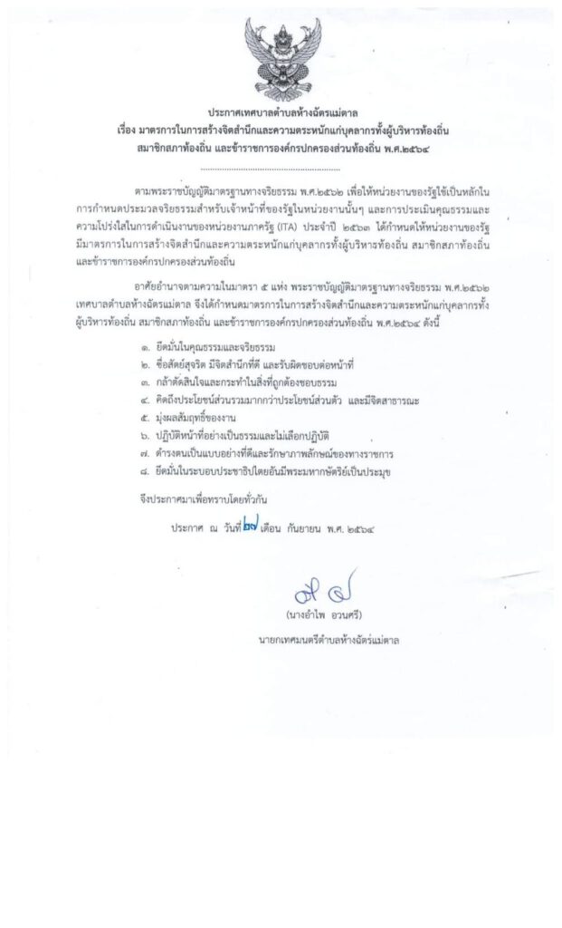 ประกาศ เรื่อง มาตรการในการสร้างจิตสำนึกและความตระหนักแก่บุคลากรทั้งผู้บริหารท้องถิ่นสมาชิกสภาท้องถิ่น และข้าราชการองค์กนปกครองส่วนท้องถิ่น พ.ศ.2564 0 Share FacebookTwitterGoogle+ReddItWhatsAppPinterestอีเมล์
