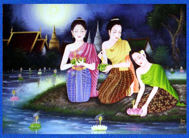 นำกระทงไปลอยตามแม่น้ำลำคลอง หรือตามแหล่งน้ำที่มีการจัดพิธี