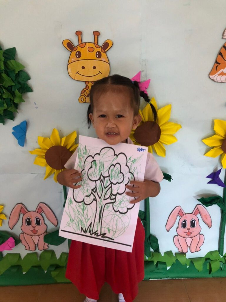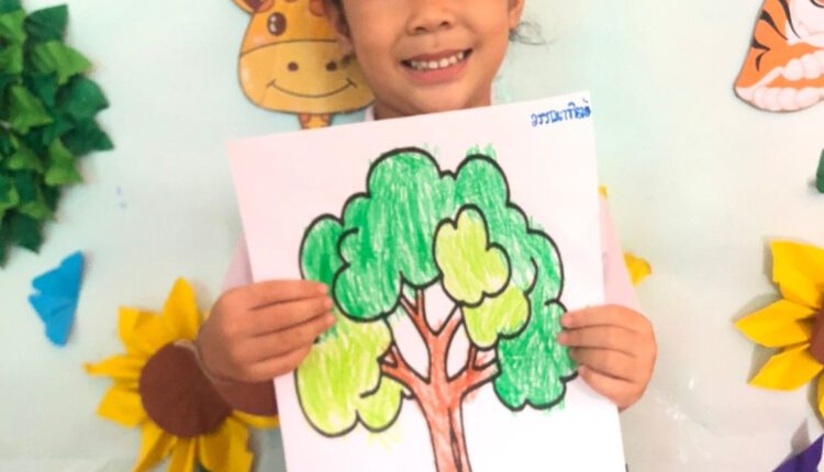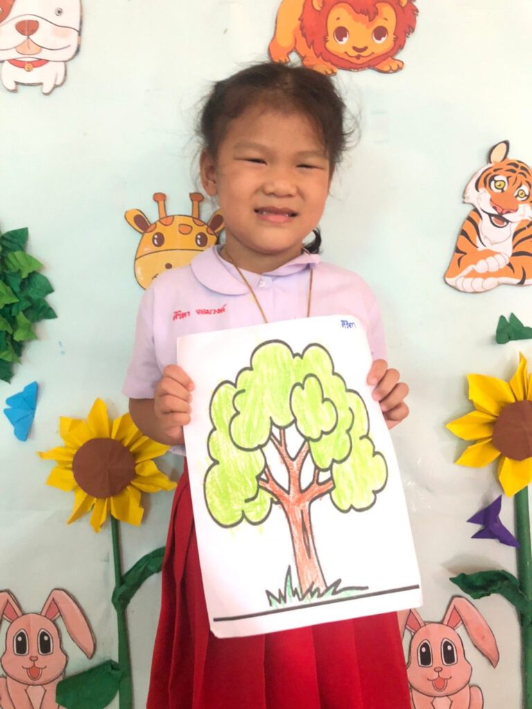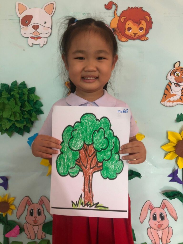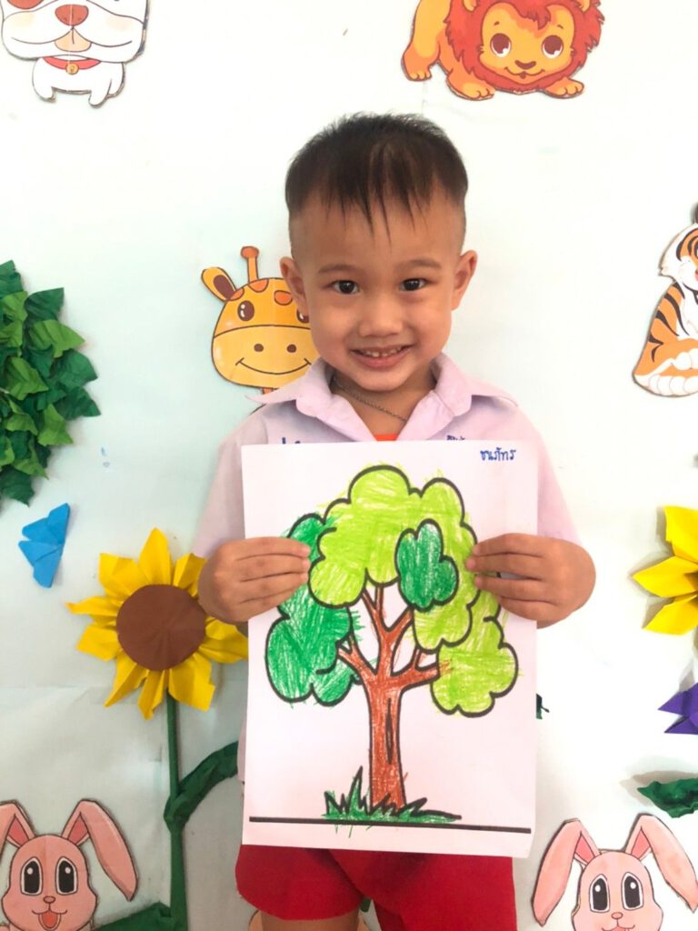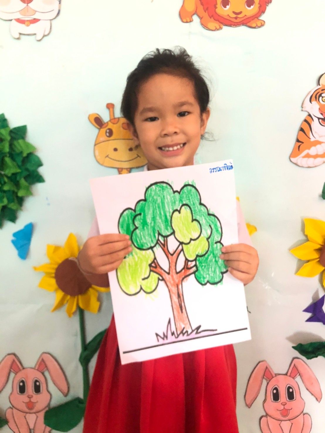 เด็กๆสร้างสรรค์การ  ระบายสี ต้นไม้ด้วยฝีมือตนเอง