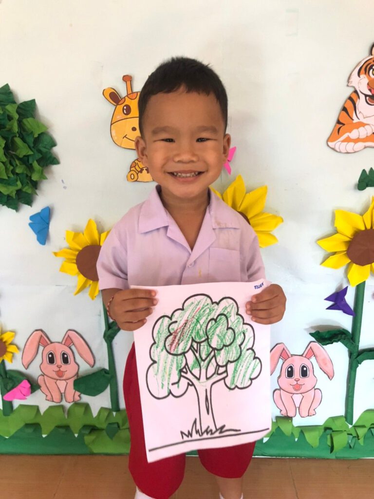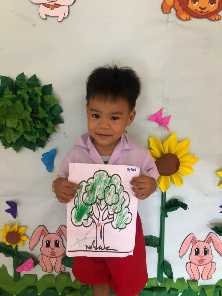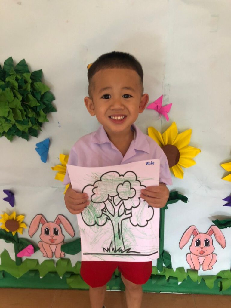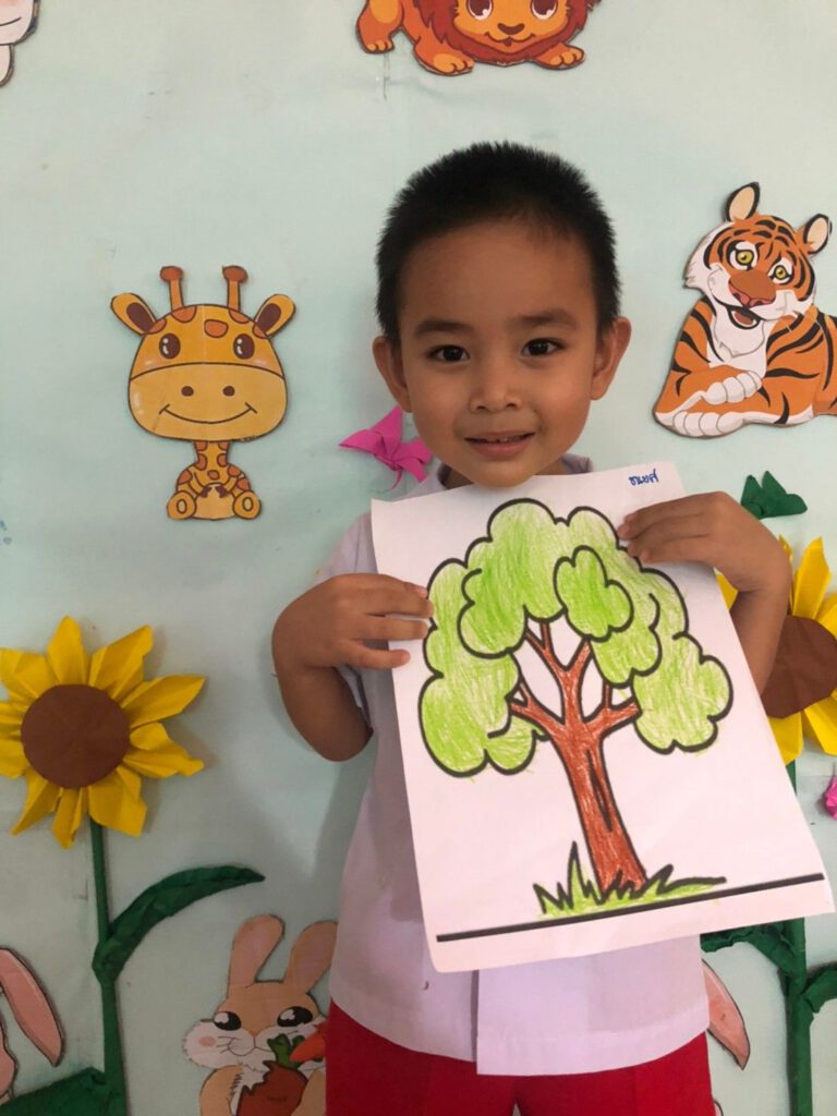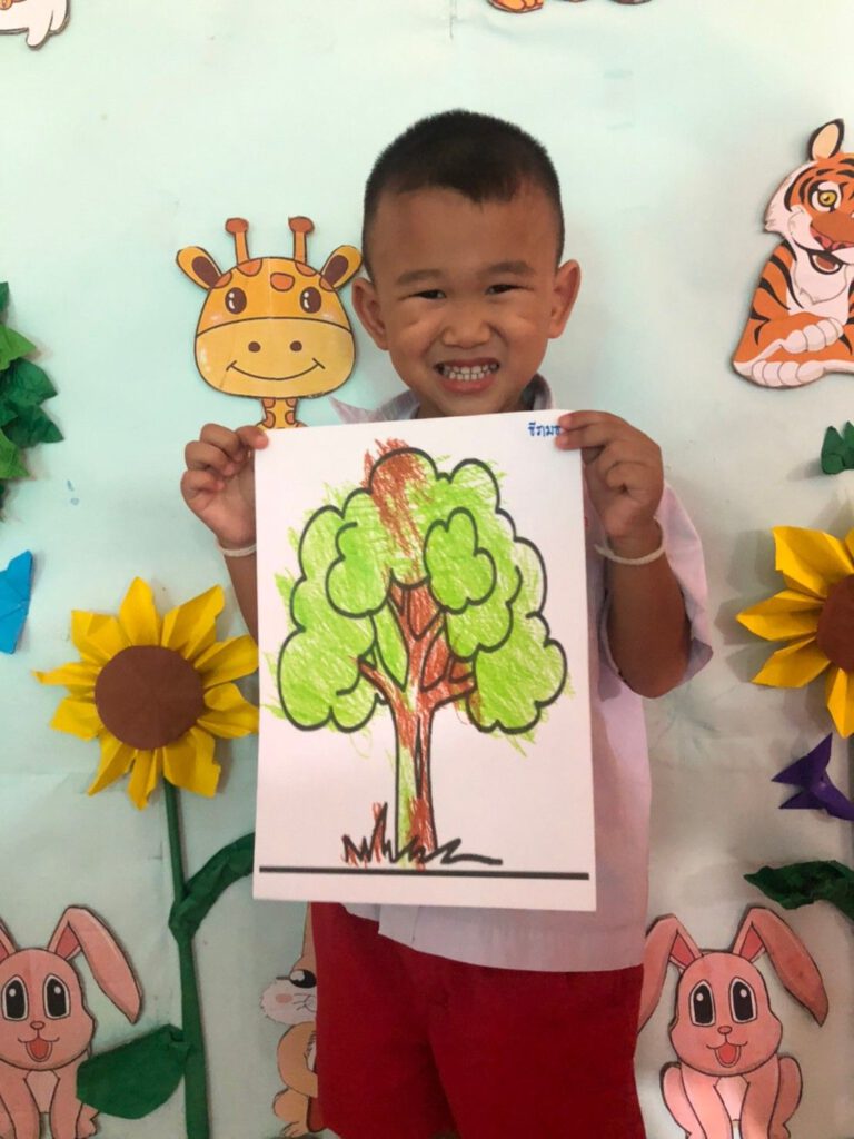 เด็กๆสร้างสรรค์การ  ระบายสี ต้นไม้ด้วยฝีมือตนเอง