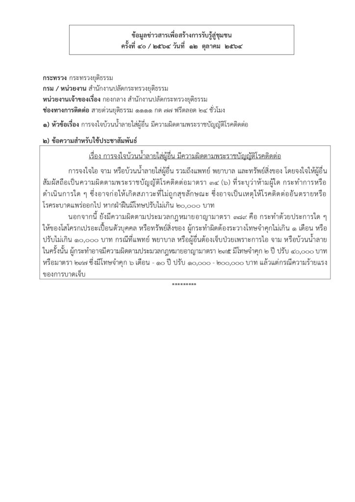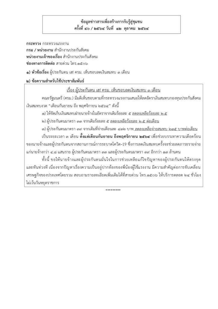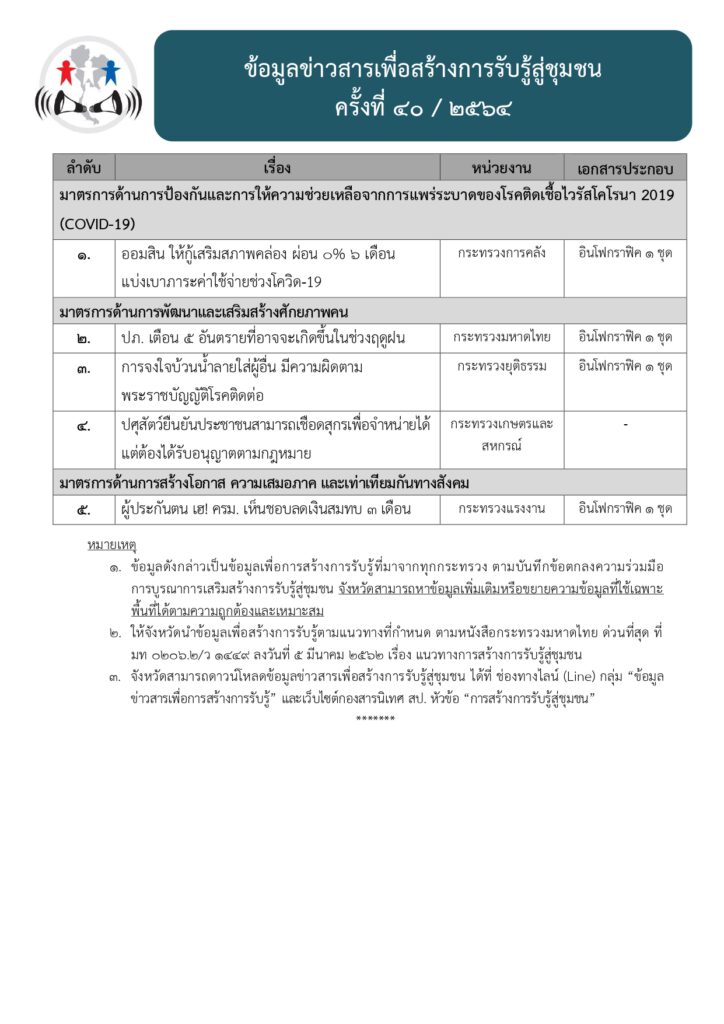 ข้อมูลข่าวสารเพื่อสร้างการรับรู้สู่ชุมชน ครั้งที่ 40/2564