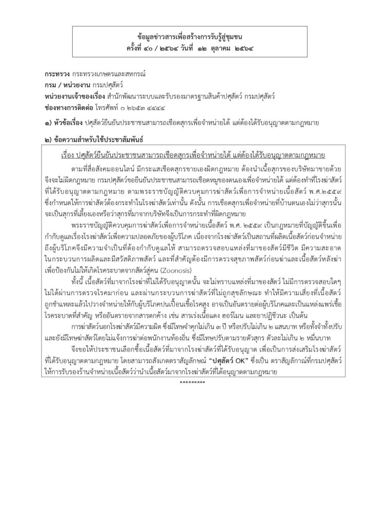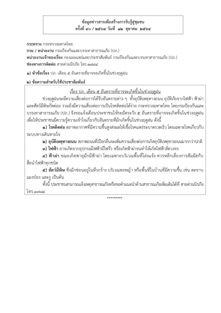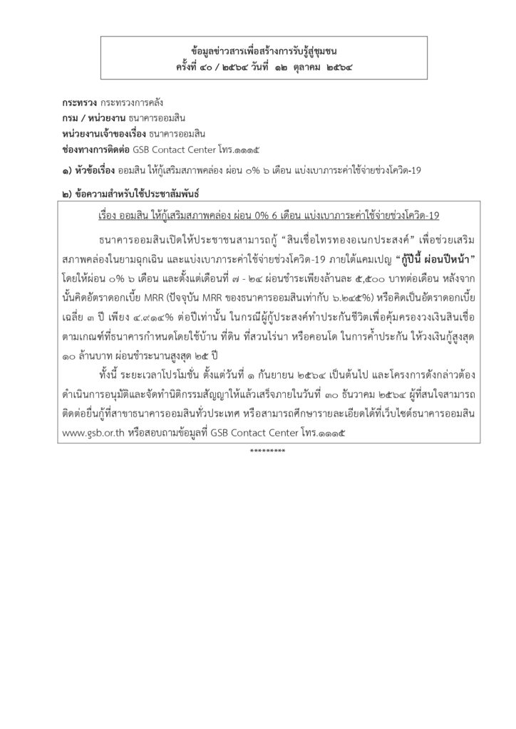 • ข้อมูลข่าวสารเพื่อสร้างการรับรู้สู่ชุมชน ครั้งที่ 40/2564