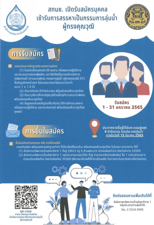 สทนช.เปิดรับสมัครบุคคลเข้ารับการสรรหาเป็นกรรมการลุ่มน้ำผู้ทรงคุณวุติ