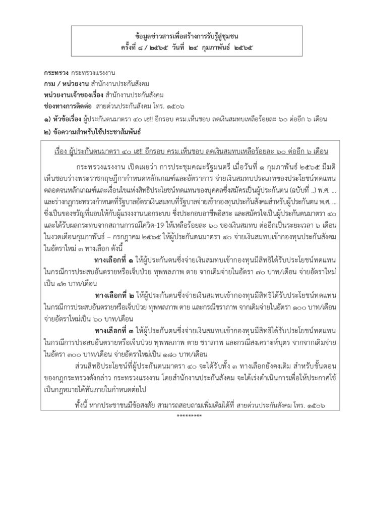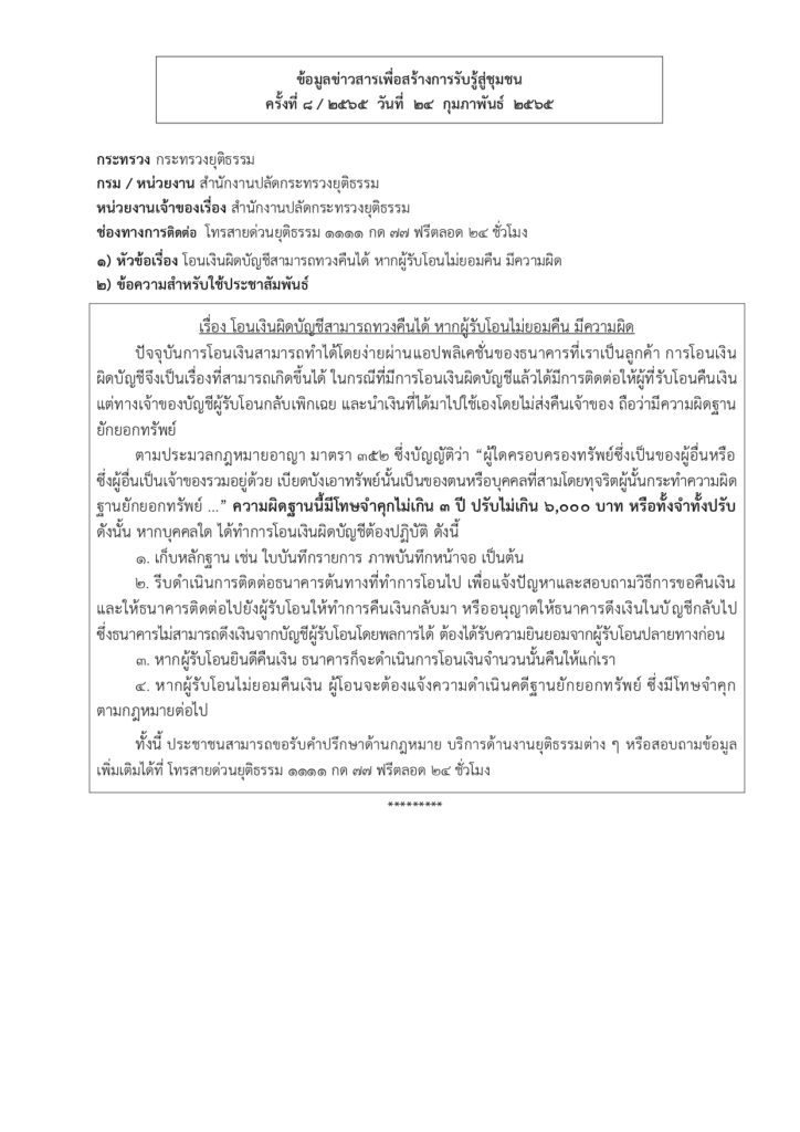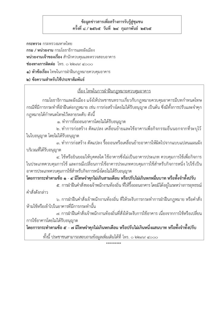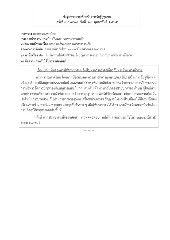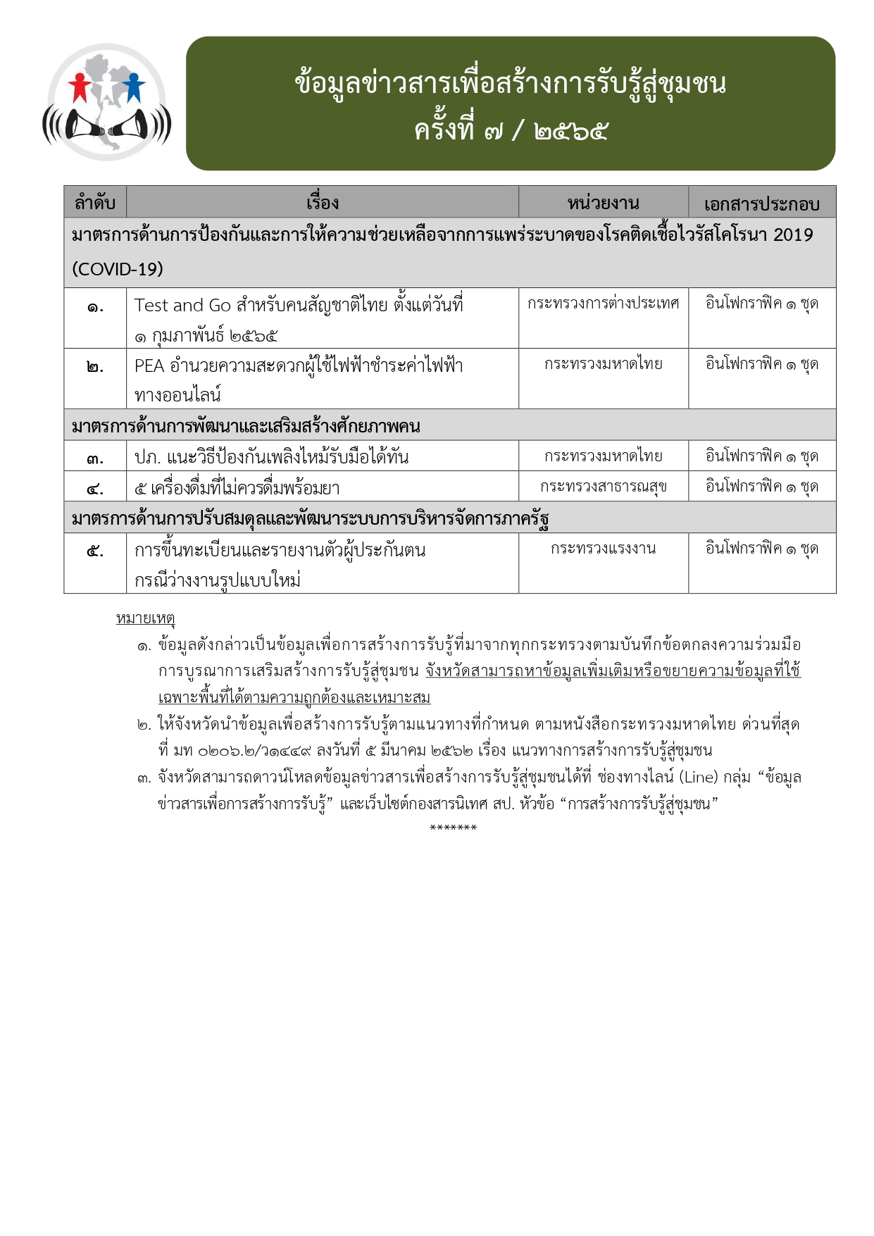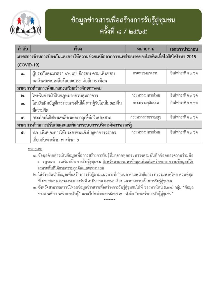 • ข้อมูลข่าวสารเพื่อสร้างการรับรู้สู่ชุมชนครั้งที่ ๘ /๒๕๖๕