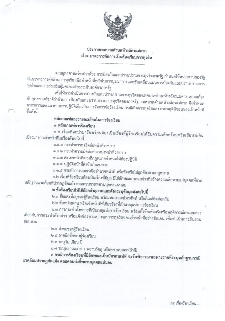 มาตรการจัดการเรื่องร้องเรียนการทุจริต