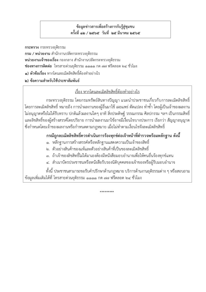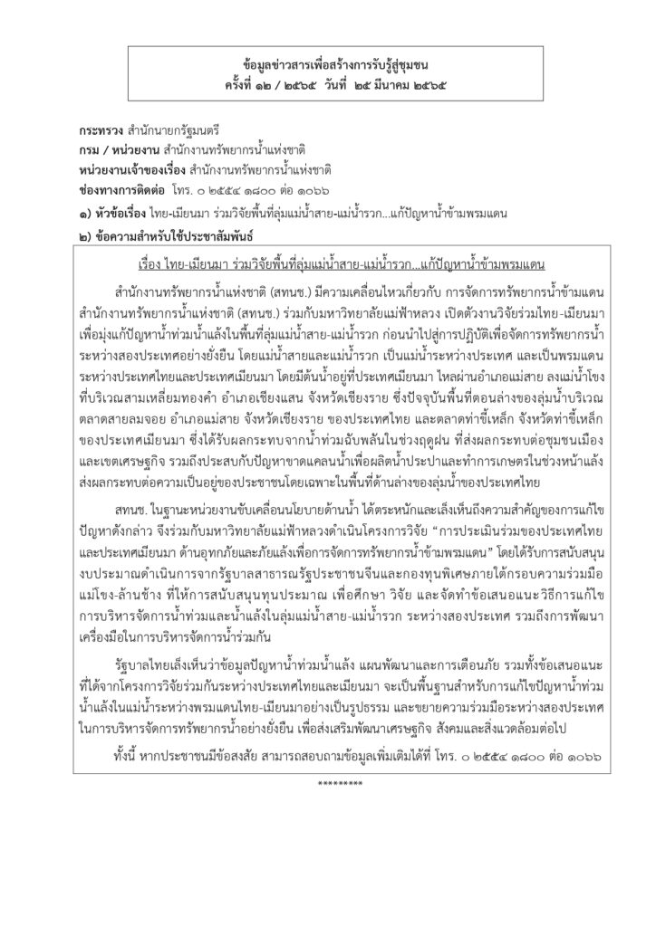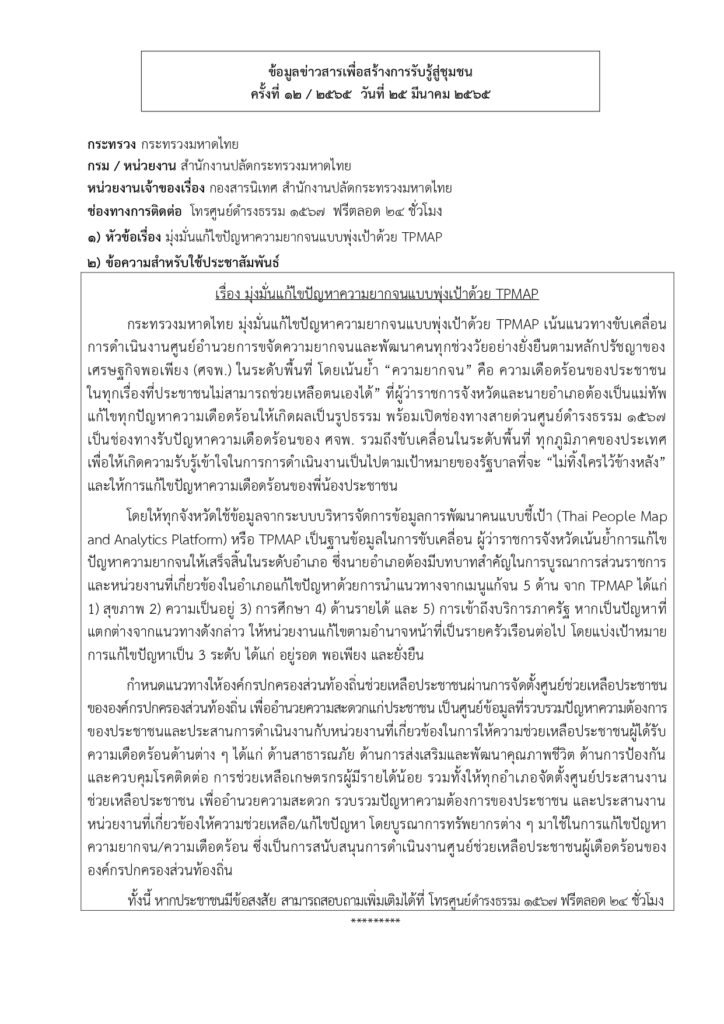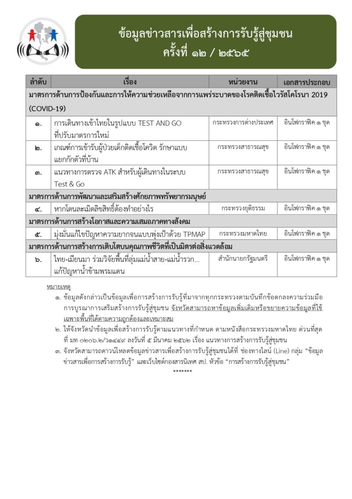 ข้อมูลข่าวสารเพื่อสร้างการรับรู้สู่ชุมชน ครั้งที่ ๑๒/๒๕๖๕ Loading... Taking too long? Reload document | Open in new tab 0 Share FacebookTwitterGoogle+ReddItWhatsAppPinterestอีเมล์