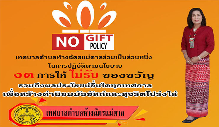 เทศบาลตำบลห้างฉัตรแม่ตาลร่วมเป็นส่วนหนึ่งในการปฏิบัติตามนโยบาย NO GIFT POLICY 0 Share FacebookTwitterGoogle+ReddItWhatsAppPinterestอีเมล์