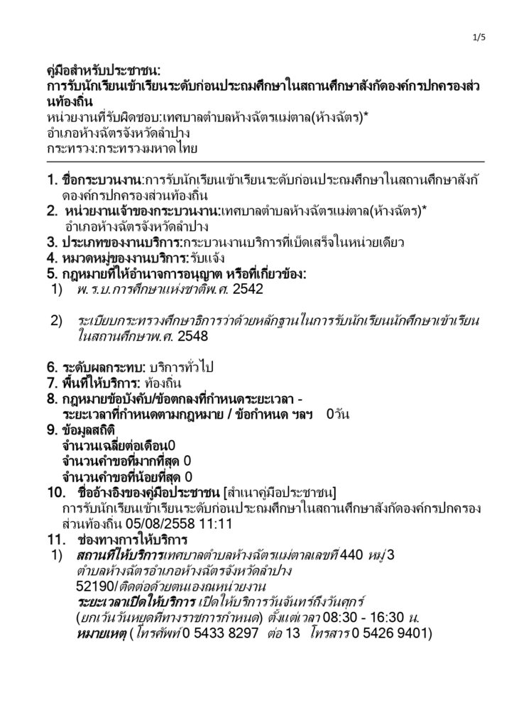 คู่มือสำหรับประชาชน: การรับนักเรียนเข้าเรียนระดับก่อนประถมศึกษาในสถานศึกษาสังกัดองค์กรปกครองส่วนท้องถิ่น Loading... Taking too long? Reload document | Open in new tab 0 Share FacebookTwitterGoogle+ReddItWhatsAppPinterestอีเมล์