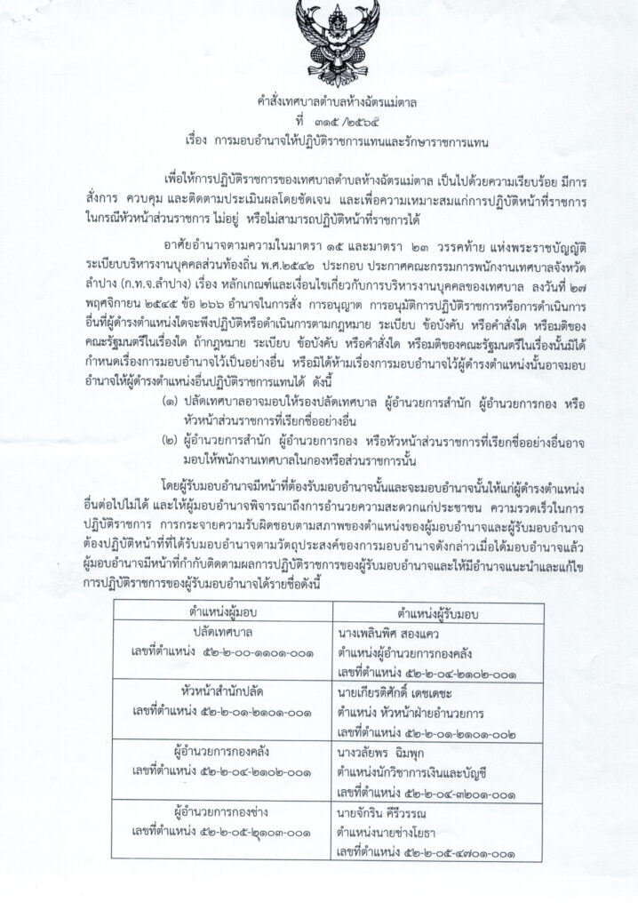 การมอบอำนาจให้ปฏิบัติราชการแทนและรักษาราชการแทน 0 Share FacebookTwitterGoogle+ReddItWhatsAppPinterestอีเมล์