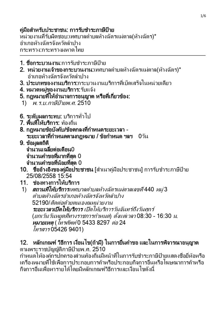 คู่มือสำหรับประชาชน: การรับชำระภาษีป้าย Loading... Taking too long? Reload document | Open in new tab 0 Share FacebookTwitterGoogle+ReddItWhatsAppPinterestอีเมล์
