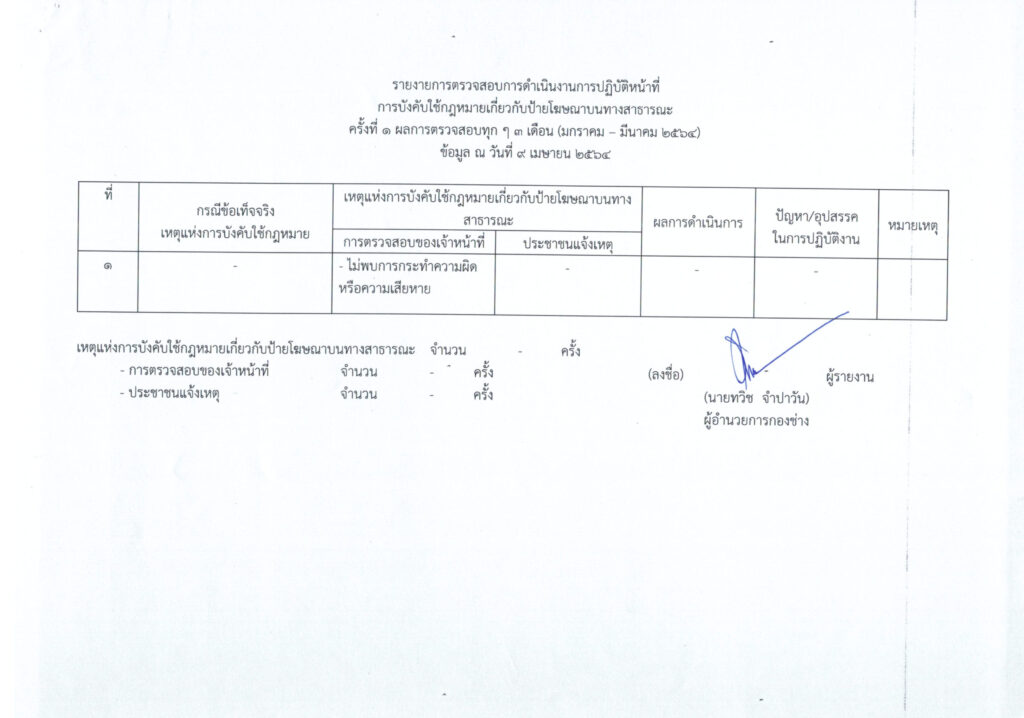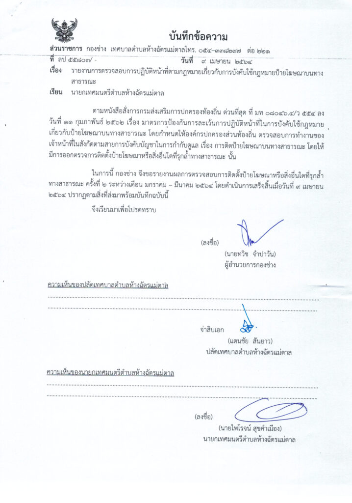 รายงานการตรวจสอบการปฏิบัติหน้าที่ตามกฎหมายเกี่ยวกับการบังคับใช้กฎหมายป้ายโฆษณาบนทางสาธารณะ 0 Share FacebookTwitterGoogle+ReddItWhatsAppPinterestอีเมล์