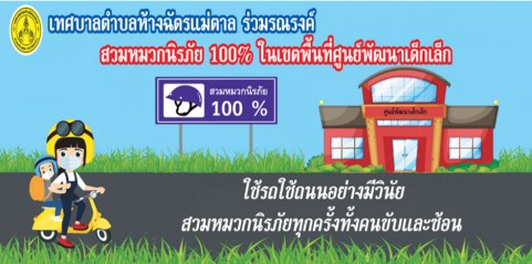 มาตรการส่งเสริมการสวมหมวกนิรภัย 100 % ของเด็กปฐมวัยในศูนย์พัฒนาเด็กเล็กในสังกัดสังกัดเทศบาลตำบลห้างฉัตรแม่ตาล เพื่อส่งเสริมให้เด็กปฐมวัยเป็นผู้มีวินัยจราจร และส่งเสริมความปลอดภัยในการสวมหมวกนิรภัยของเด็กปฐมวัย และผู้ปกครองในศูนย์พัฒนาเด็กเล็ก ให้เล็งความสำคัญกับความปลอดภัยในการเดินทางด้วยรถจักรยานยนต์
