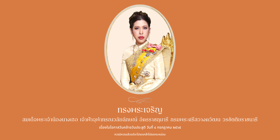 4 กรกฎาคม วันคล้ายวันประสูติ สมเด็จพระเจ้าน้องนางเธอ เจ้าฟ้าจุฬาภรณวลัยลักษณ์ อัครราชกุมารี กรมพระศรีสวางควัฒน วรขัตติยราชนารี 0 Share FacebookTwitterGoogle+ReddItWhatsAppPinterestอีเมล์