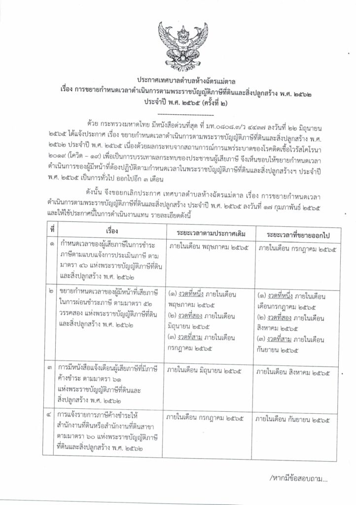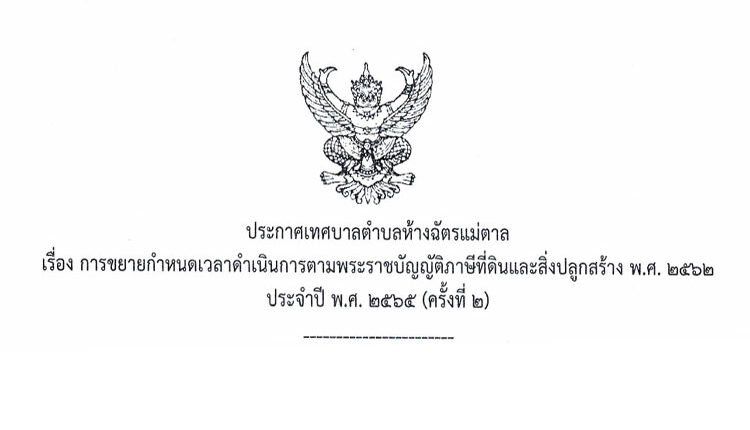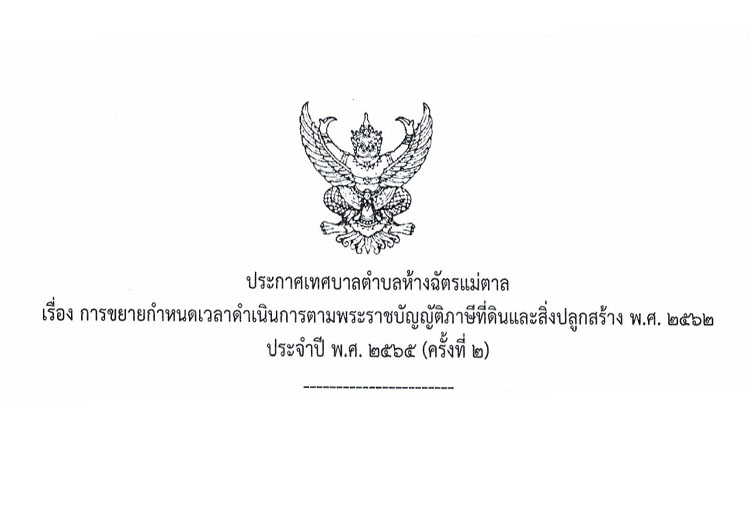 ประกาศเทศบาลตำบลห้างฉัตรแม่ตาล เรื่อง การขยายกำหนดเวลาดำเนินการตามพระราชบัญญติภาษีที่ดินและสิ่งปลูกสร้าง พ.ศ.2562 ประจำปี พ.ศ. 2565 (ครั้งที่ 2) 0 Share FacebookTwitterGoogle+ReddItWhatsAppPinterestอีเมล์