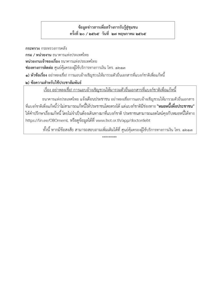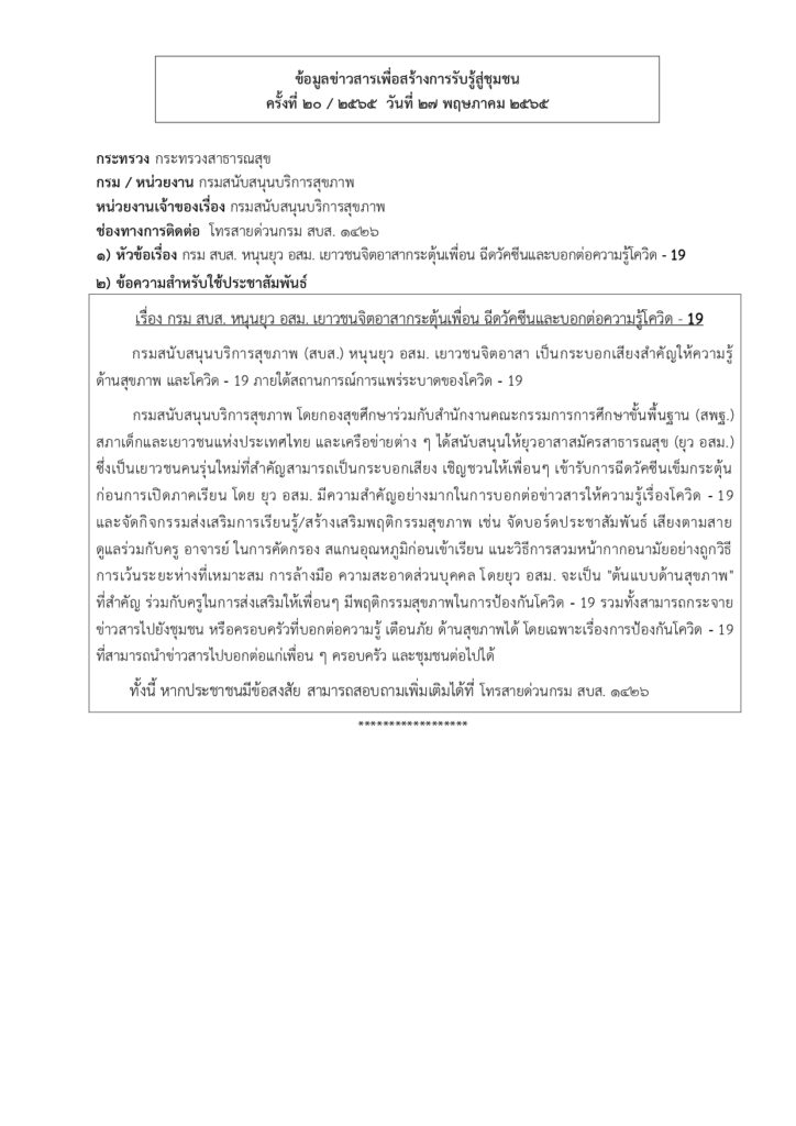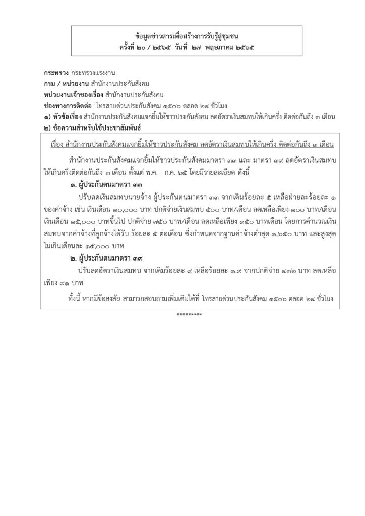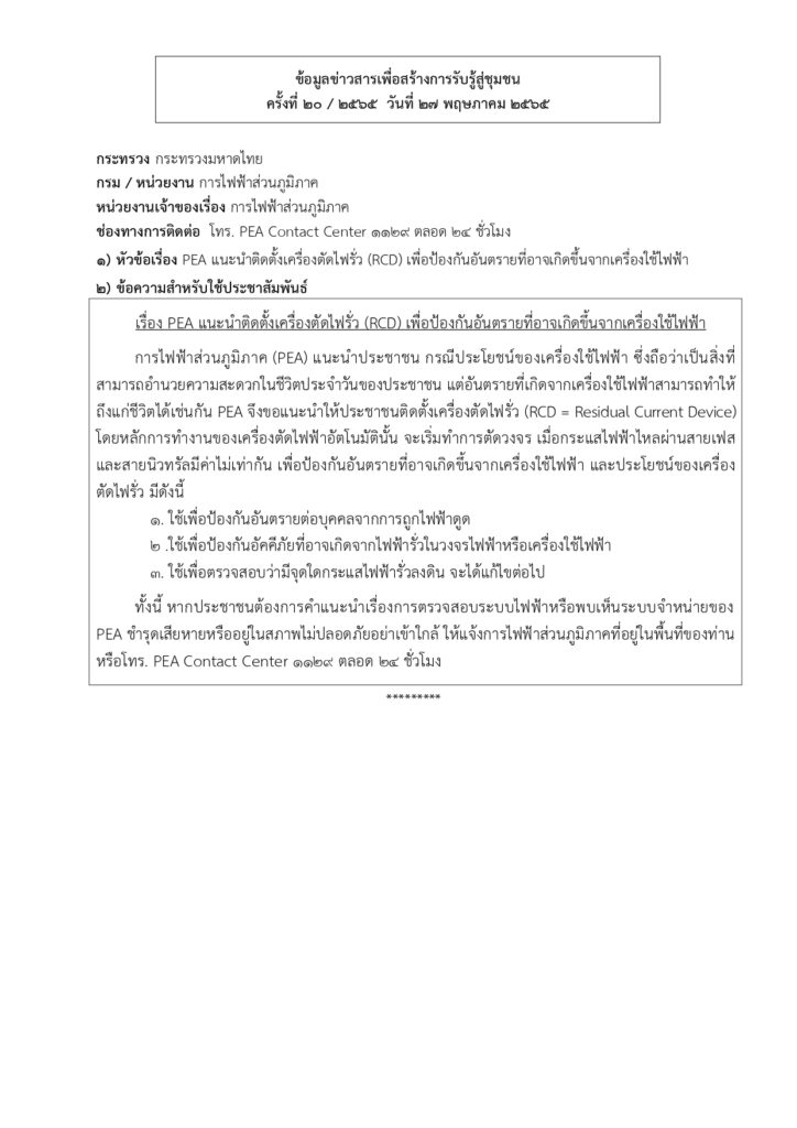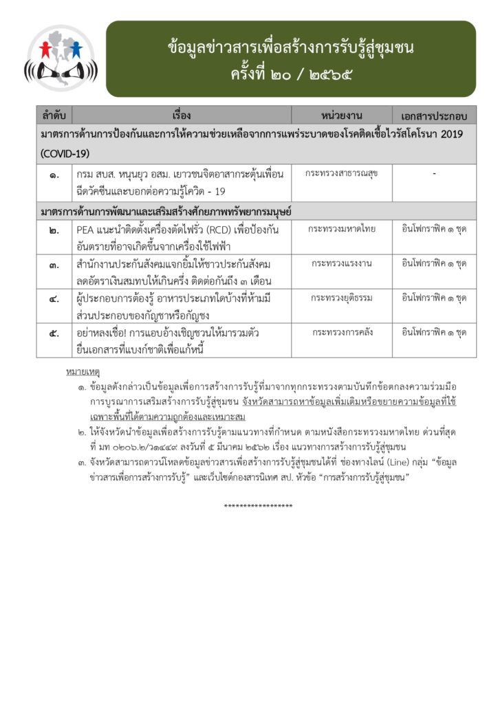 ข้อมูลข่าวสารเพื่อสร้างการรับรู้สู่ชุมชน ครั้งที่ ๒๐/๒๕๖๕ Loading... Taking too long? Reload document | Open in new tab 0 Share FacebookTwitterGoogle+ReddItWhatsAppPinterestอีเมล์