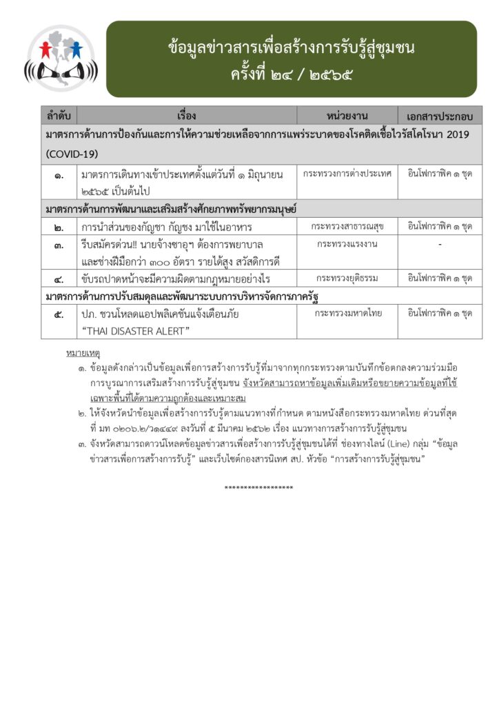 ข้อมูลข่าวสารเพื่อสร้างการรับรู้สู่ชุมชน ครั้งที่ ๒๔/๒๕๖๕ Loading... Taking too long? Reload document | Open in new tab 0 Share FacebookTwitterGoogle+ReddItWhatsAppPinterestอีเมล์