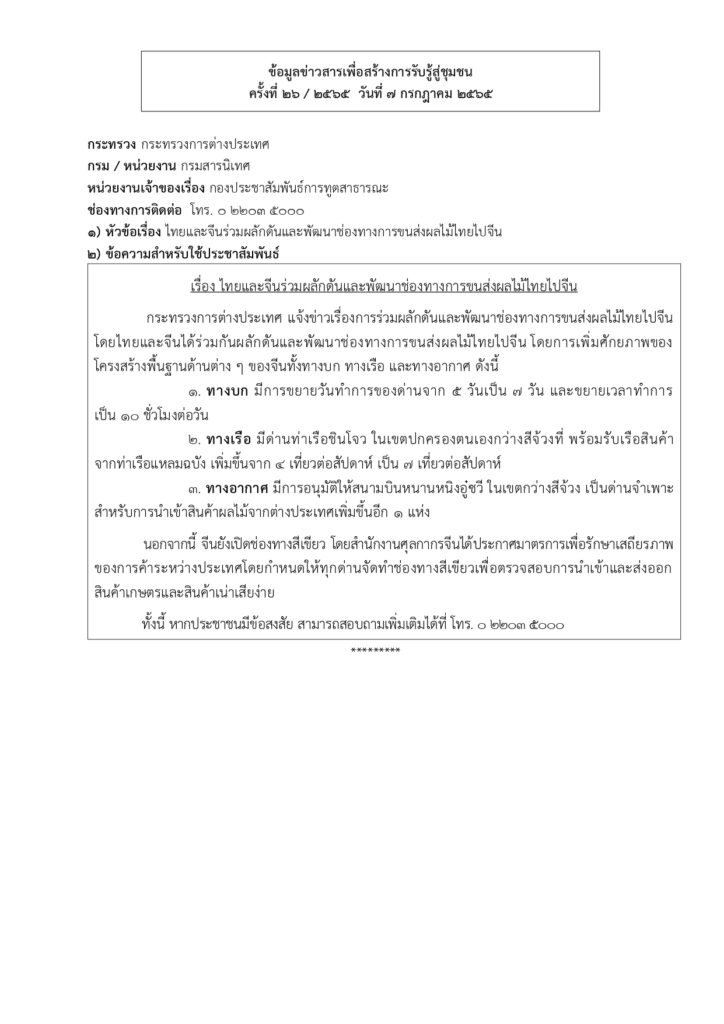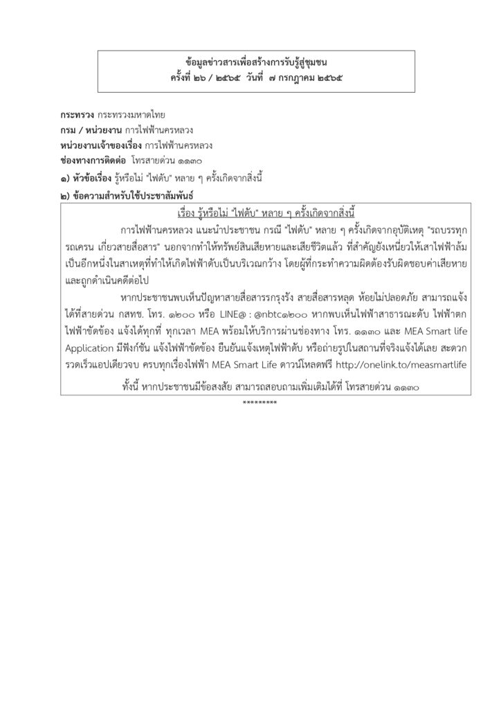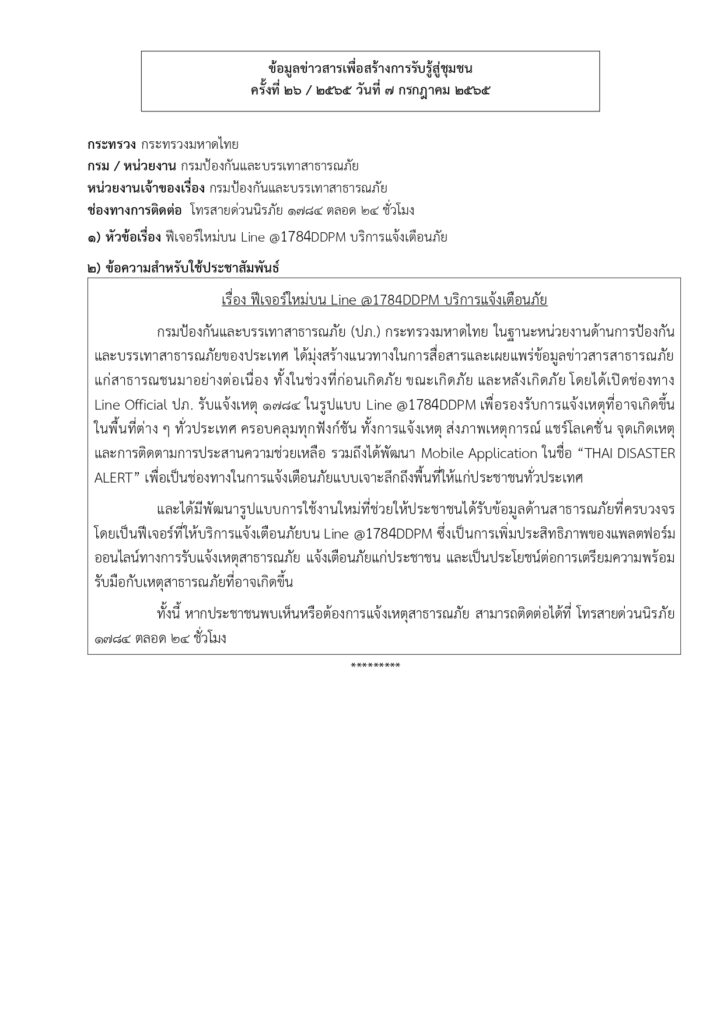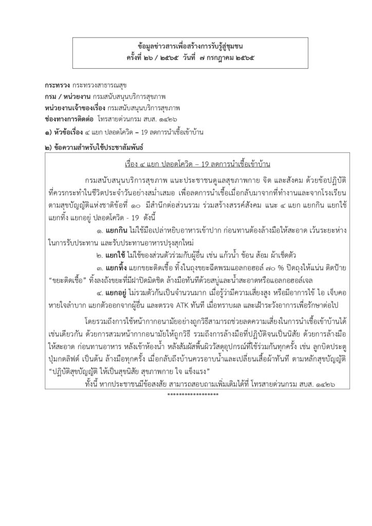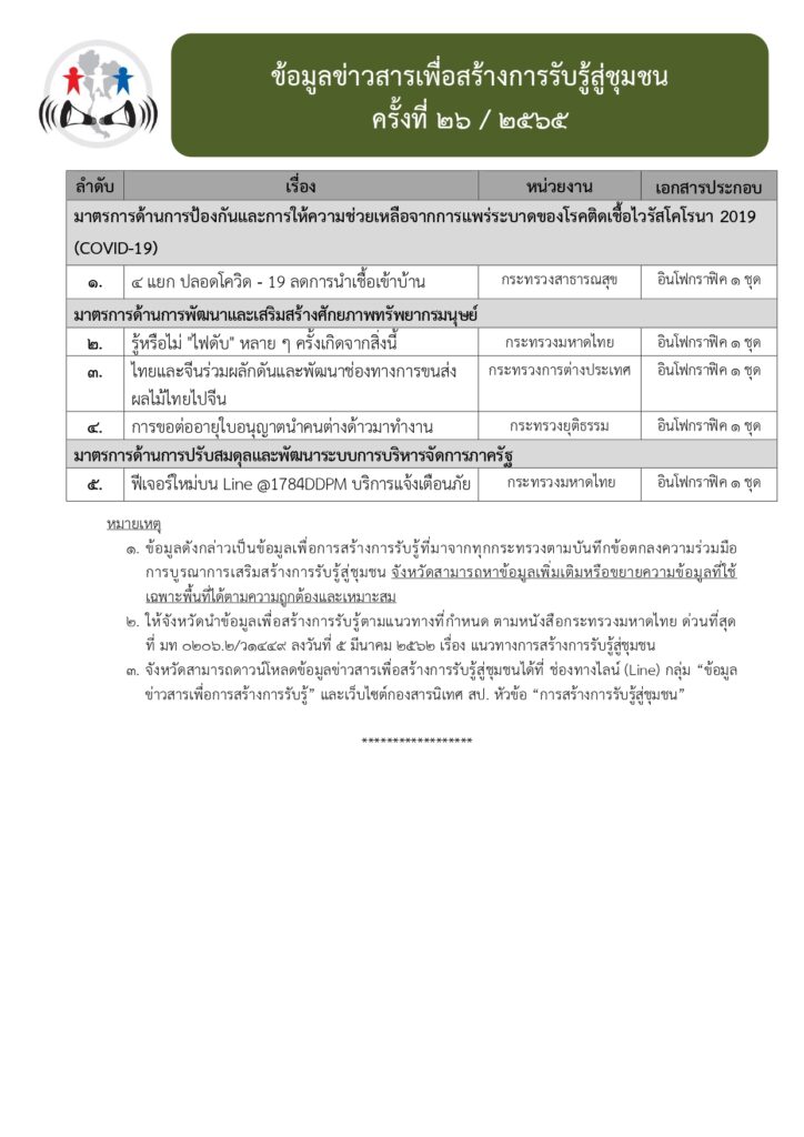 ข้อมูลข่าวสารเพื่อสร้างการรับรู้สู่ชุมชน ครั้งที่ ๒๖/๒๕๖๕ Loading... Taking too long? Reload document | Open in new tab 0 Share FacebookTwitterGoogle+ReddItWhatsAppPinterestอีเมล์