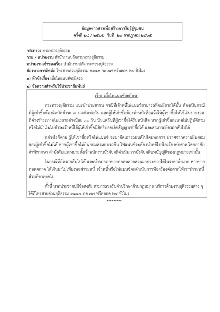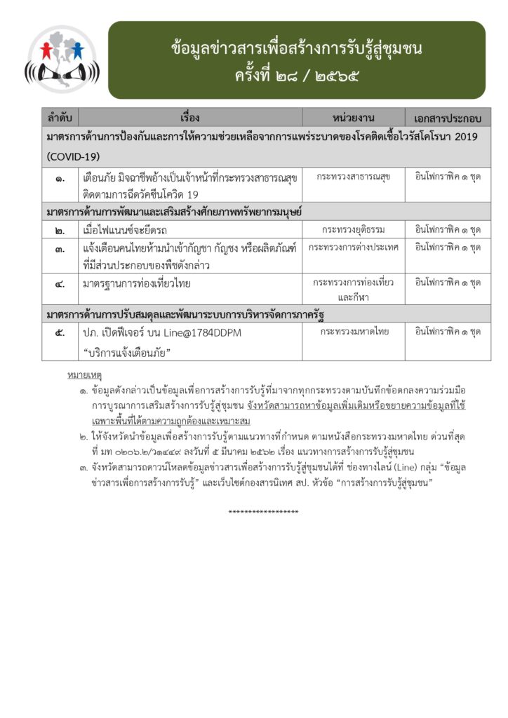ข้อมูลข่าวสารเพื่อสร้างการรับรู้สู่ชุมชน ครั้งที่ ๒๘/๒๕๖๕