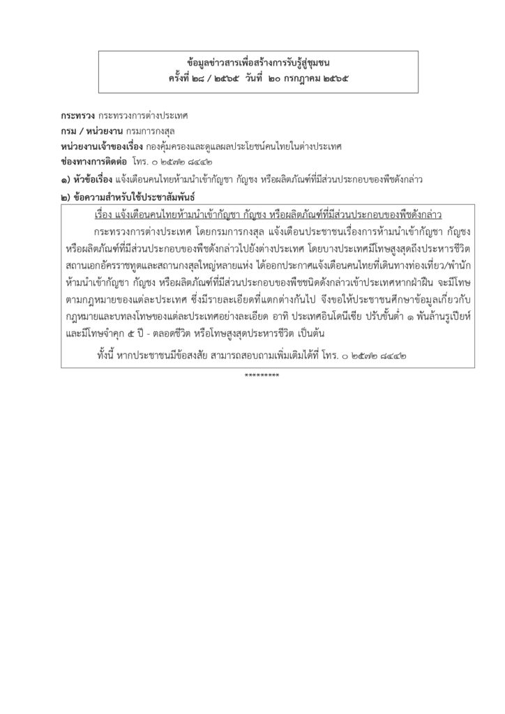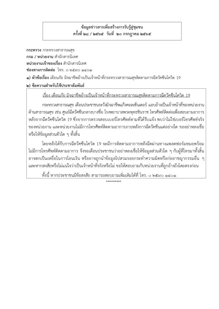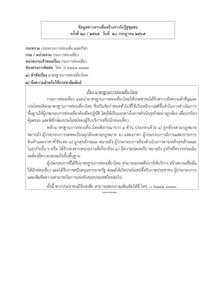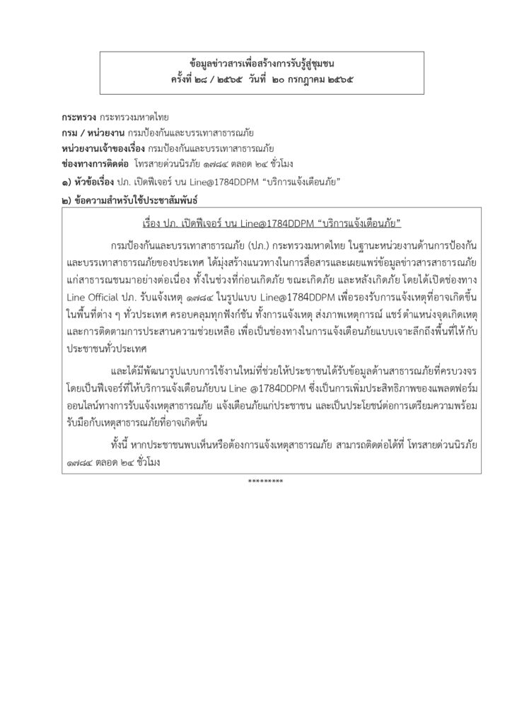 • ข้อมูลข่าวสารเพื่อสร้างการรับรู้สู่ชุมชน ครั้งที่ ๒๘/๒๕๖๕