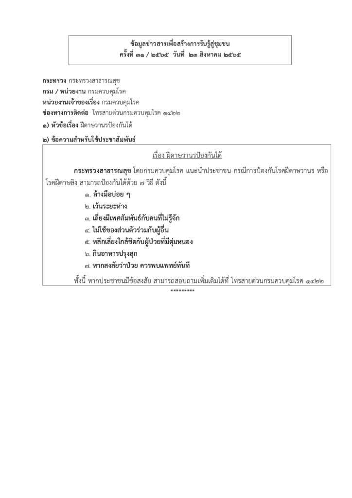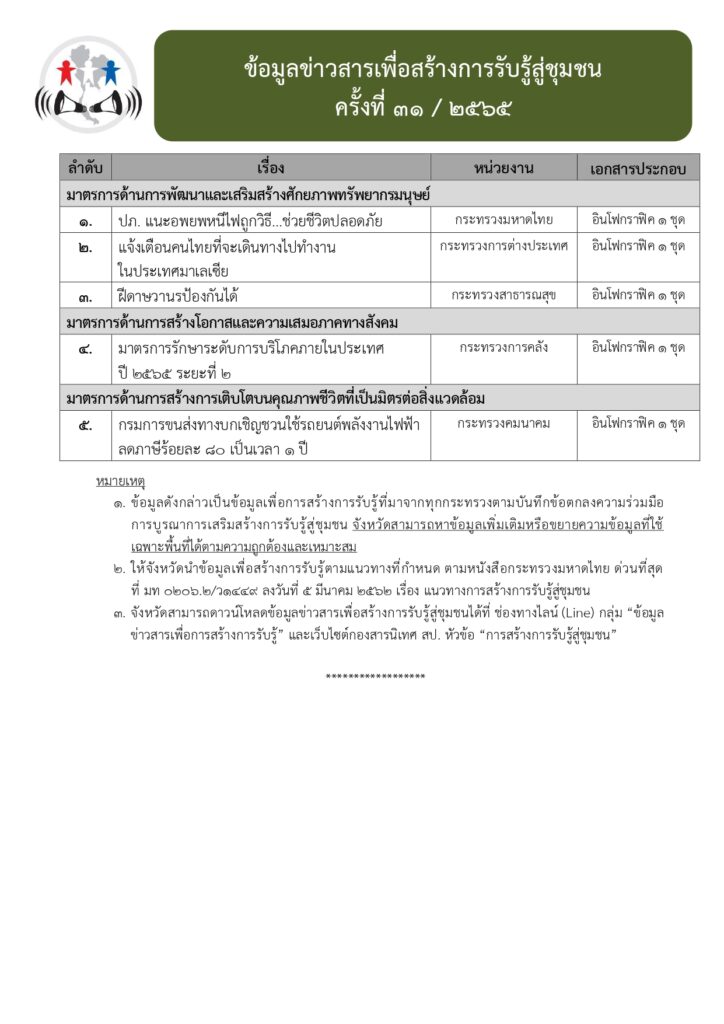 ข้อมูลข่าวสารเพื่อสร้างการรับรู้สู่ชุมชน ครั้งที่ ๓๑/๒๕๖๕ Loading... Taking too long? Reload document | Open in new tab 0 Share FacebookTwitterGoogle+ReddItWhatsAppPinterestอีเมล์