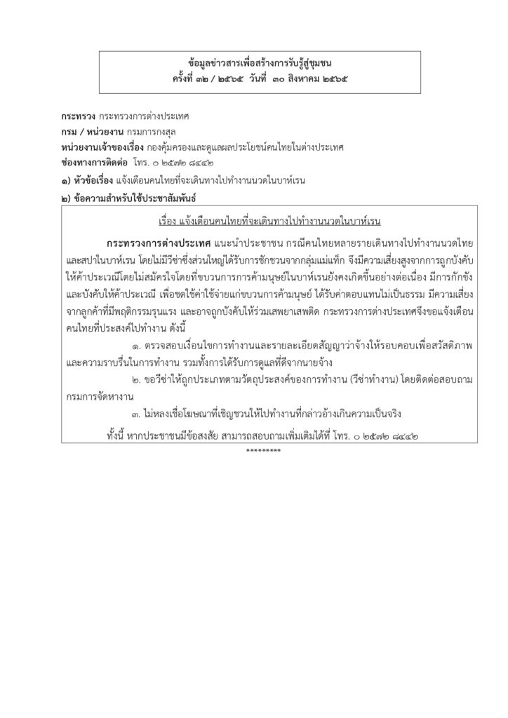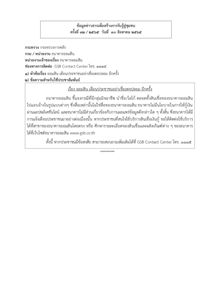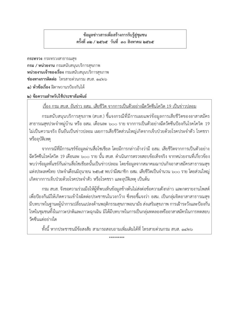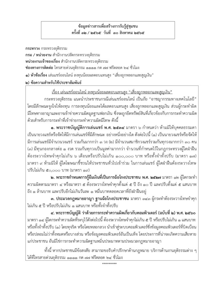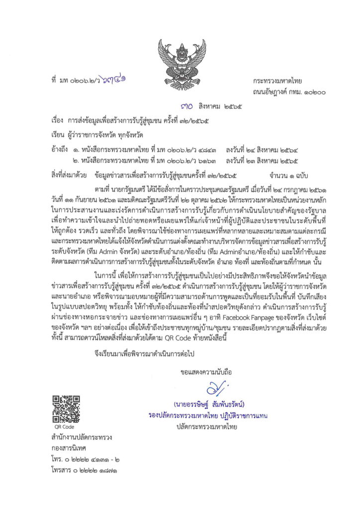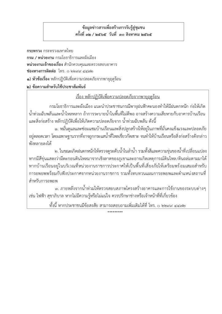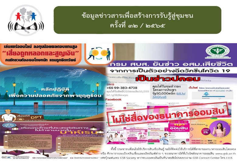 • ข้อมูลข่าวสารเพื่อสร้างการรับรู้สู่ชุมชน ครั้งที่ ๓๒/๒๕๖๕