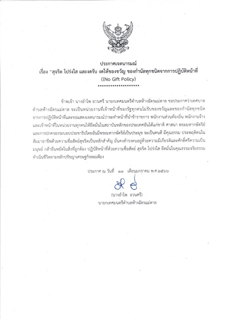 ประกาศเจตนารมณ์ เรื่อง สุจริต โปร่งใส และงดรับ งดให้ของขวัญ ของกำนัลทุกชนิดจาการปฏิบัติหน้าที่ No Gift Policy 0 Share FacebookTwitterGoogle+ReddItWhatsAppPinterestอีเมล์
