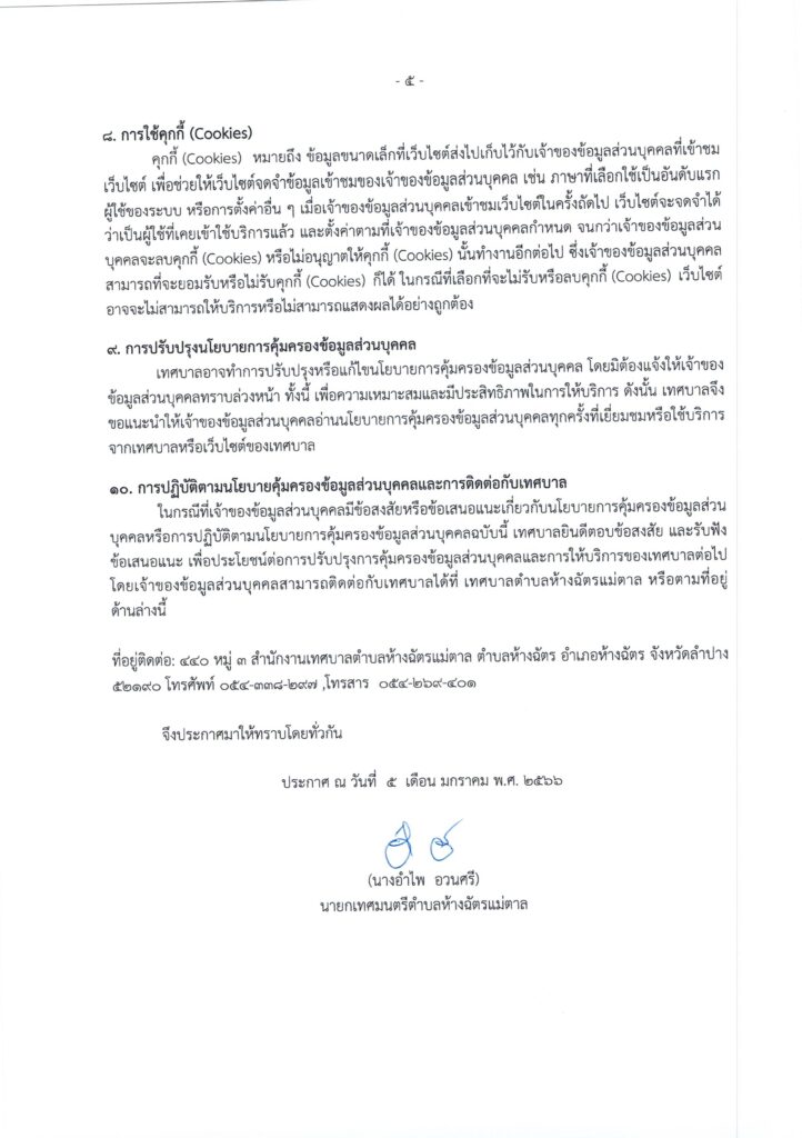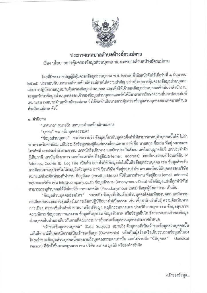 นโยบายการคุ้มครองส่วนบุคคล เทศบาลตำบลห้างฉัตรแม่ตาล 0 Share FacebookTwitterGoogle+ReddItWhatsAppPinterestอีเมล์