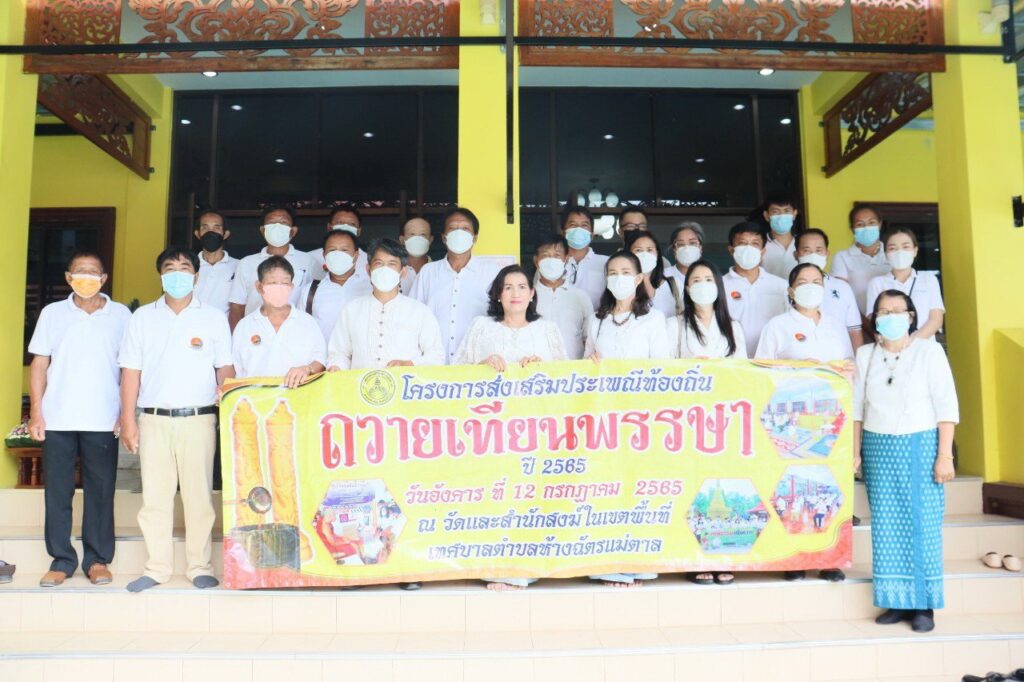 เทศบาลตำบลห้างฉัตรแม่ตาล นำโดย นางอำไพ อวนศรี นายกเทศมนตรีตำบลห้างฉัตรแม่ตาล คณะบริหาร สมาชิกสภา เขต1 เขต 2 ข้าราชการและพนักงานเทศบาล จัดทำโครงการส่งเสริมประเพณีท้องถิ่น ถวายเทียนพรรษา ประจำปี 2565 จำนวน 9 วัด ณ วัดและสำนักสงฆ์ในเขตพื้นที่เทศบาลตำบลห้างฉัตรแม่ตาล