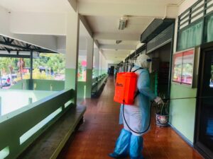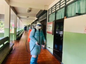 เทศบาลตำบลห้างฉัตรแม่ตาล นำโดยนางอำไพ อวนศรี นายกเทศมนตรีตำบลห้างฉัตรแม่ตาล มอบหมายนายจิรัฏฐ์ ยารังสี หัวหน้าสำนักปลัด งานสาธารณสุข และเจ้าพนักงานป้องกันและบรรเทาสาธารณภัย ลงพื้นที่พ่นยาฆ่าเชื้อโควิค -๑๙ (Covid-๑๙) ตามแผนปฏิบัติการควบคุมโรคโควิค-๑๙ ในพื้นที่รับผิดชอบของเทศบาลตำบลห้าฃฉัตรแม่ตาล ณ โรงเรียนห้างฉัตรวิทยาและวันบ้านแพะดอนสัก