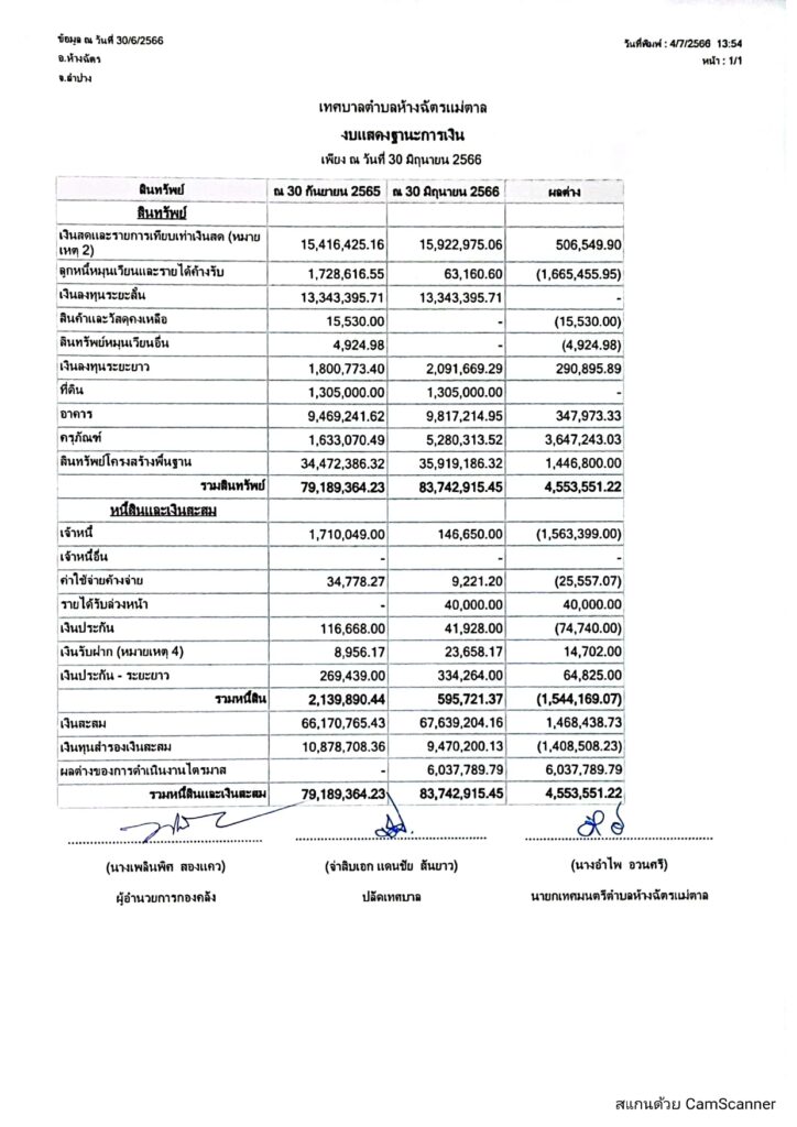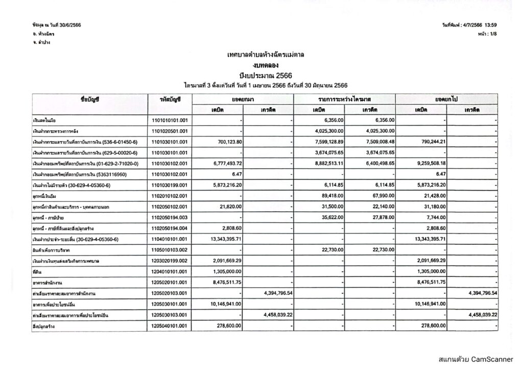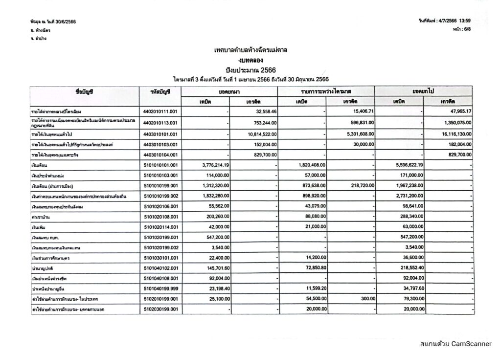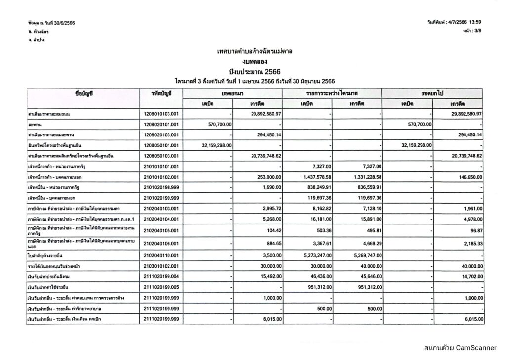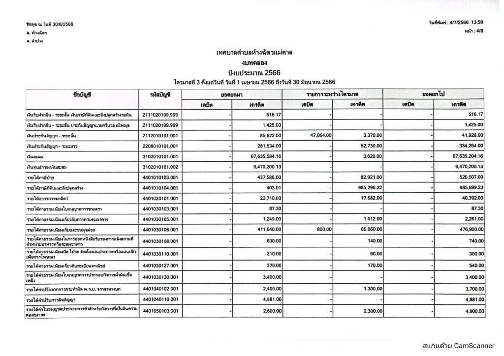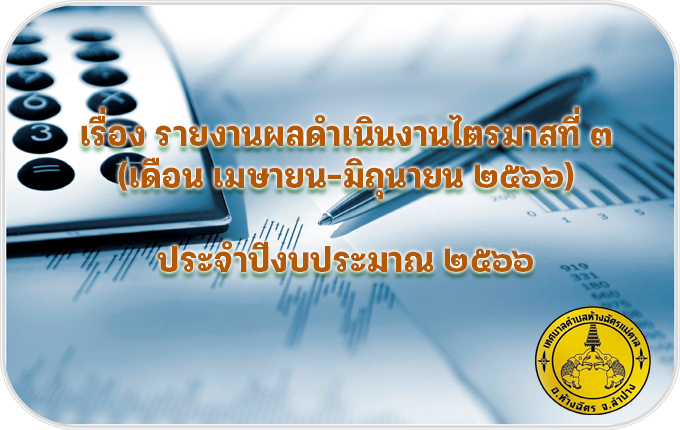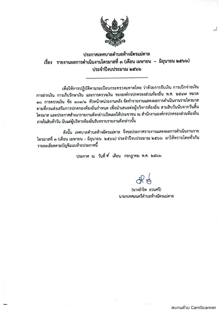 ประกาศเทศบาลตำบลห้างฉัตรแม่ตาล เรื่อง รายงานการดำเนินงานไตรมาสที่ ๓ (เดือนเมษายน – มิถุนายน ๒๕๖๖)ประจำปีงบประมาณ ๒๕๖๖