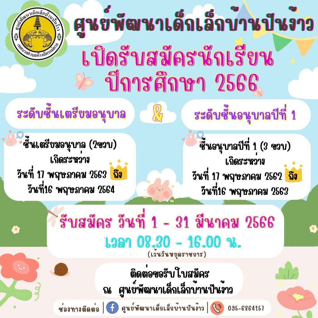 ประกาศศูนย์พัฒนาเด็กเล็กบ้านปันง้าว เรื่อง รับสมัครนักเรียนเพื่อเข้าเรียนในศูนย์พัฒนาเด็กเล็กบ้านปันง้าว ประจำปีการศึกษา 2566