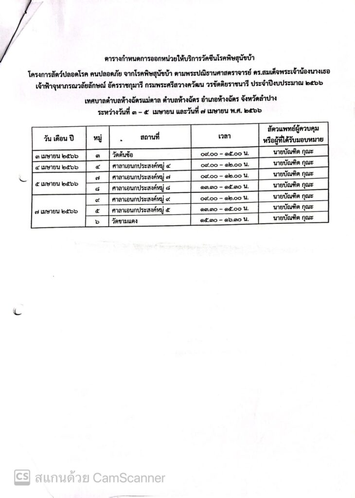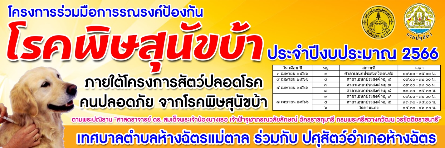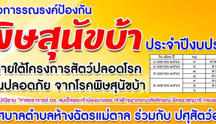 แจ้งประชาสัมพันธ์กำหนดการฉีดวัดซีนป้องกันโรคพิษสุนัขบ้า 0 Share FacebookTwitterGoogle+ReddItWhatsAppPinterestอีเมล์