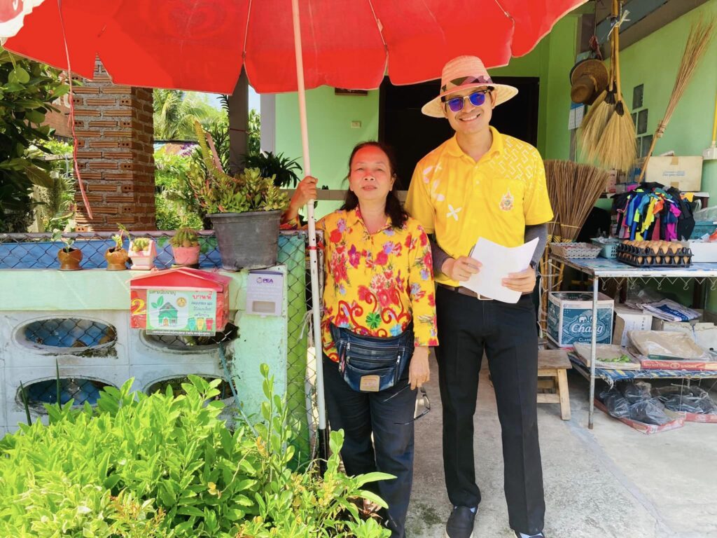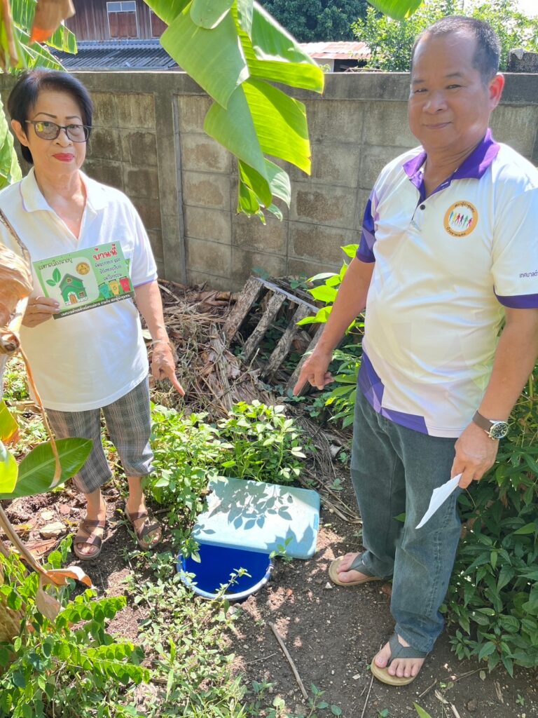 การออกพื้นที่เยี่ยมบ้านที่คัดแยกขยะ และมีถังขยะเปียกลดโลกร้อน ในพื้นที่บ้านขามแดง หมู่ที่ 6