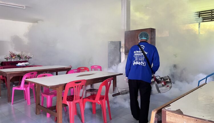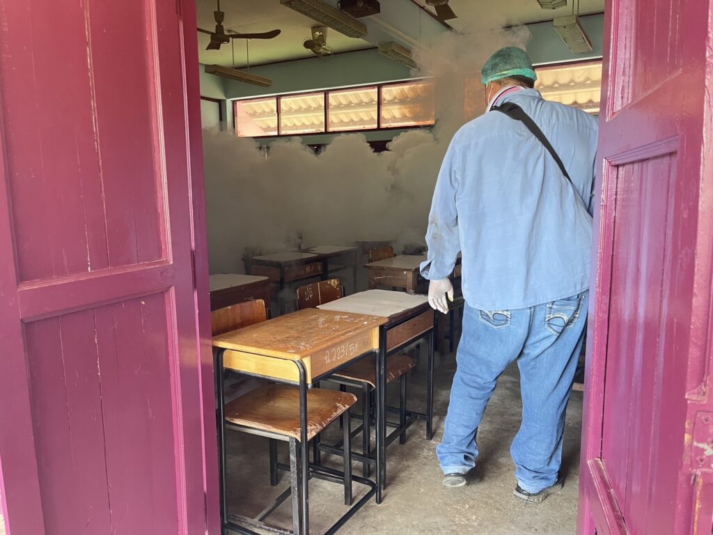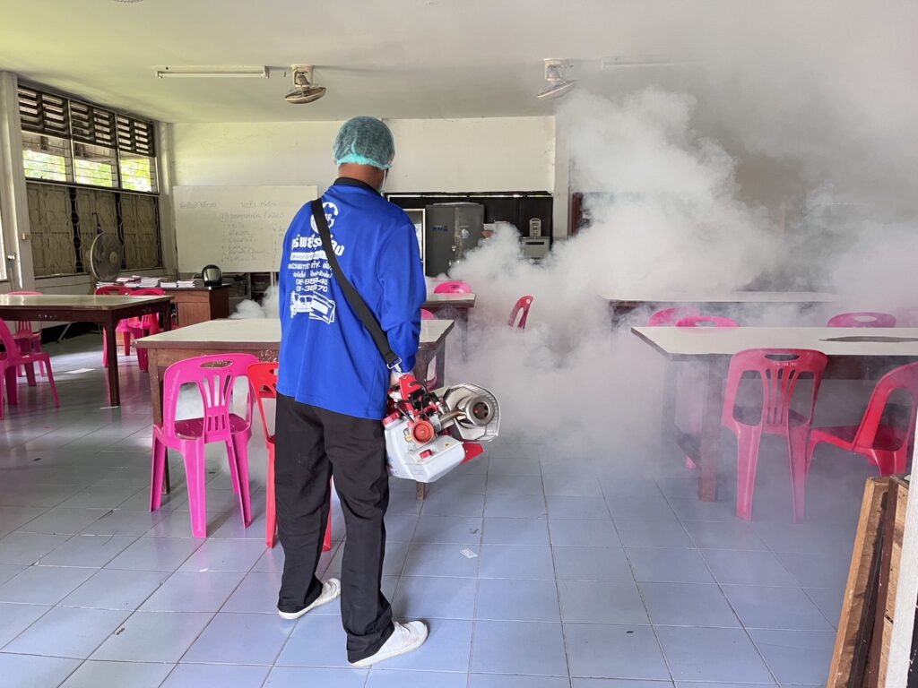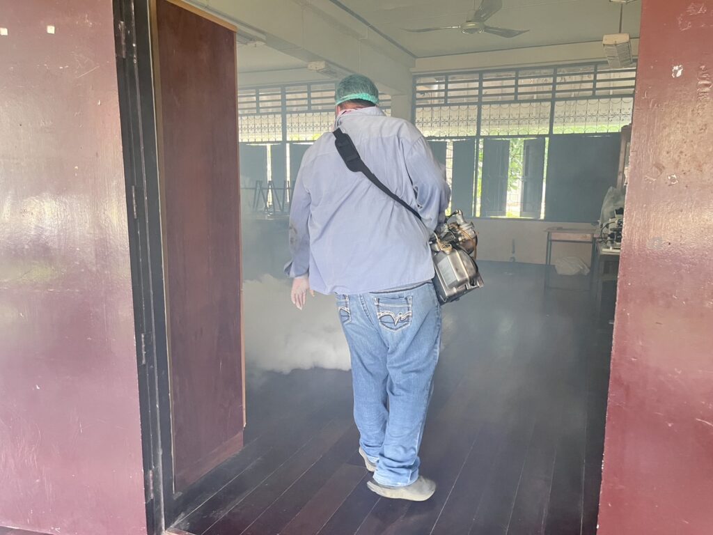 เวลา15.00 น. งานสาธารณสุขฯ ร่วมกับงานสนับสนุนการควบคุมโรคระบาด กลุ่มงานป้องกันฯ เทศบาลตำบลห้างฉัตรแม่ตาลได้ลงพื้นที่ออกพ่นเคมีหมอกควันกำจัดยุงลาย ในอาคาร และบริเวณรอบๆ เพื่อป้องกัน และควบคุมโรคไข้เลือดออก ครั้งที่ 2 ในบริเวณโรงเรียนห้างฉัตรวิทยา ซึ่งได้รับแจ้งประสานจากโรงพยาบาลห้างฉัตร พบผู้ป่วยไข้เลือดออก จำนวน 1 ราย #การควบคุมโรคไข้เลือดออก
