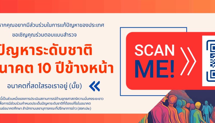 ประชาสัมพันธ์:ปัญหาระดับชาติในอนาตค 10ปีข้างหน้า ประชาสัมพันธ์ แบบสำรวจเรื่อง ” ” แบบสำรวจนี้เป็นส่วนหนึ่งของการประเมินสถานการณ์ด้านยุทธศาสตร์ความมั่นคงระยะยาว เพื่อการมีส่วนร่วมกำหนดประเด็นปัญหาระดับชาติที่ต้องแก้ไขในอนาคต มาร่วมทำแบบสำรวจกันเยอะๆนะคะ https://docs.google.com/…/1FAIpQLSenyNGsX…/viewform 0 Share FacebookTwitterGoogle+ReddItWhatsAppPinterestอีเมล์