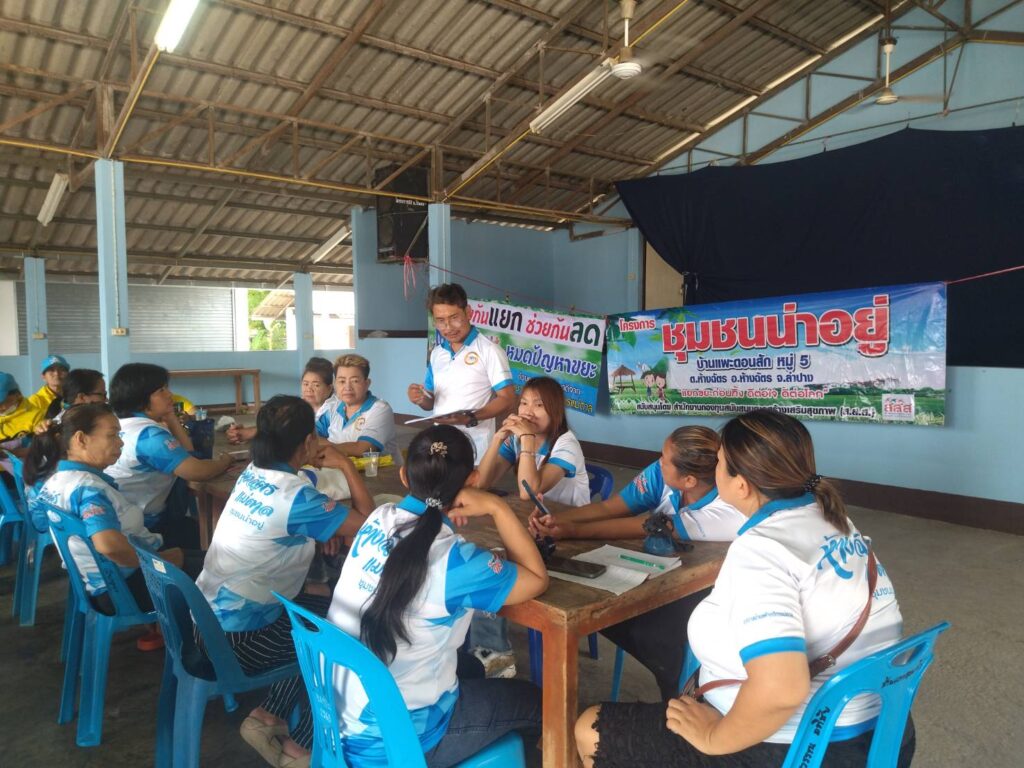 กิจกรรมโครงการชุมชนน่าอยู่ของบ้านแพะดอนสัก ประชุมคัดเลือกครัวเรือนต้นแบบในการคัดแยกขยะเปียกทำเป็นปุ๋ย และรับบริจาคขยะรีไซเคิลในชุมชน เพื่อลดปริมาณขยะ เพิ่มรายได้ในชุมชน และเป็นกำลังใจในการมีส่วนร่วมของทุกครัวเรือนที่มีการคัดแยกขยะ