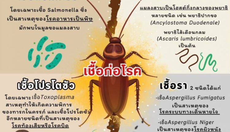 แมลงสาบเป็นพาหนะ และตัวแพร่กระจายเชื้อโรคในมนุษย์