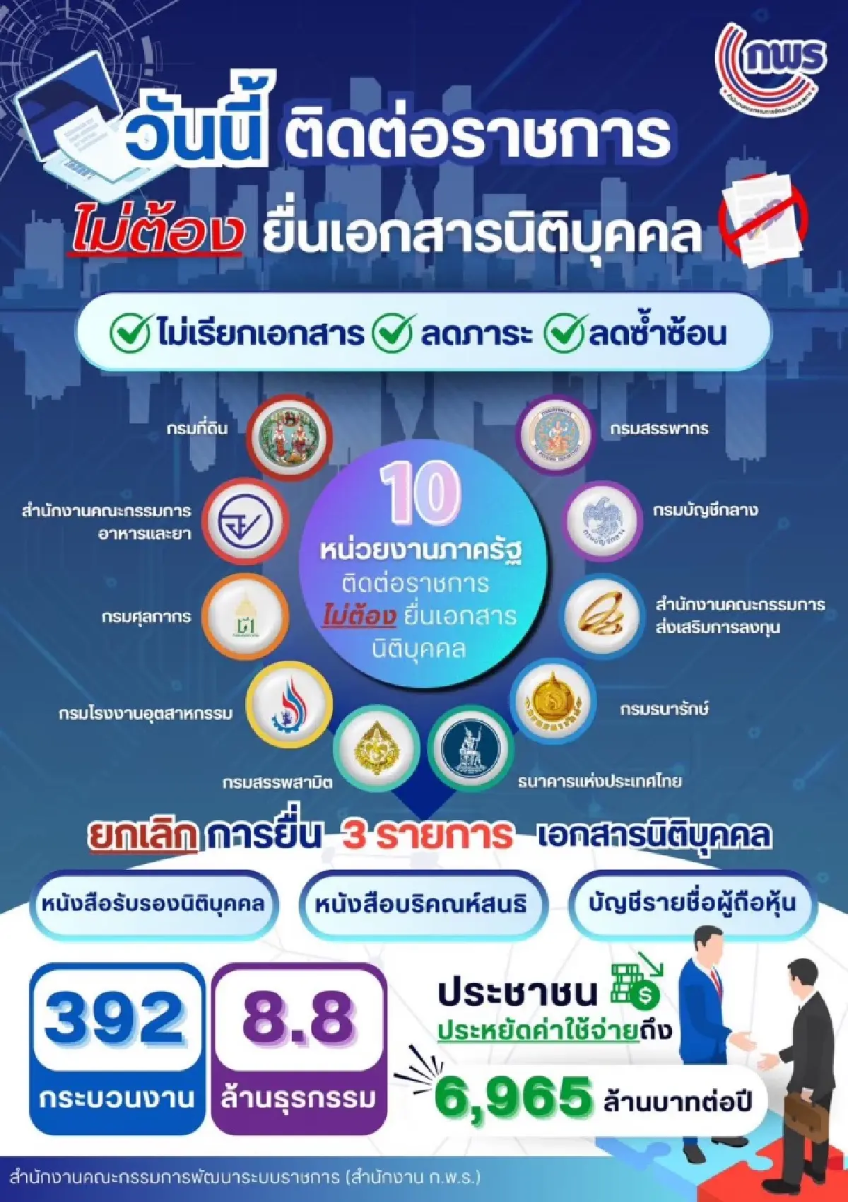 เช็คที่นี่‼️ ติดต่อราชการ 10 หน่วยงานรัฐไม่ต้องยื่นเอกสารนิติบุคคล