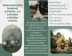 • ประชาสัมพันธ์ : แผ่นพับแหล่งท่องเที่ยว “วัดพระธาตุปางม่วง”
