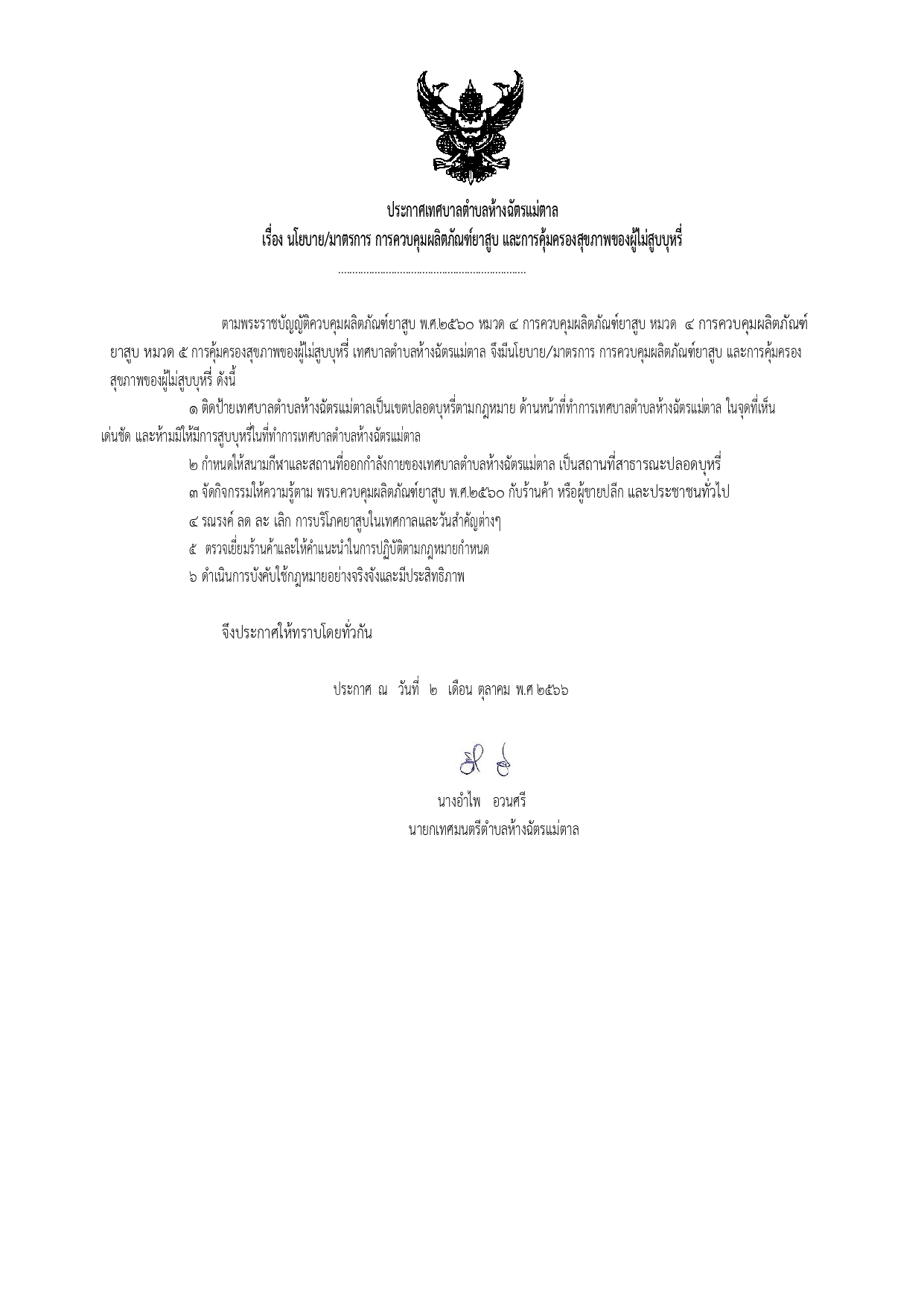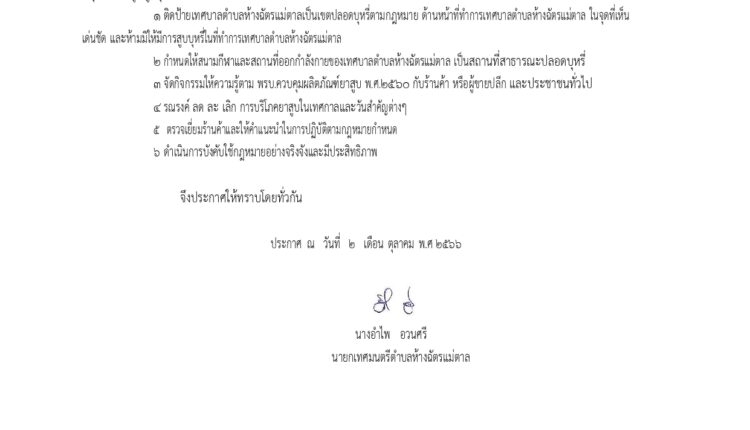 เรื่อง นโยบาย/มาตรการ การควบคุมผลิตภัณฑ์ยาสูบ และการคุ้มครองสุขภาพของผู้ไม่สูบบุหรี่