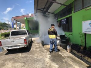 เวลา 15.00 น. งานสาธารณสุขฯ ร่วมกับงานสนับสนุนการควบคุมโรคระบาด กลุ่มงานป้องกันฯ เทศบาลตำบลห้างฉัตรแม่ตาลได้ลงพื้นที่ออกพ่นเคมีหมอกควันกำจัดยุงลาย ในอาคาร และบริเวณรอบๆ เพื่อป้องกัน และควบคุมโรคไข้เลือดออก ในบริเวณศูนย์อนามัยกลุ่มชาติพันธุ์ ชายขอบ และแรงงานข้ามชาติ ซึ่งได้รับแจ้งว่าพบผู้ป่วยไข้เลือดออก จำนวน 1 ราย