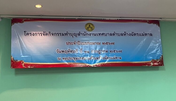 เทศบาลตำบลห้างฉัตรแม่ตาล ได้จัดกิจกรรมทำบุญสำนักงาน ประจำปี 2567 0 Share FacebookTwitterGoogle+ReddItWhatsAppPinterestอีเมล์