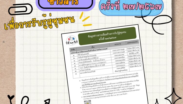 ข้อมูลข่าวสารเพื่อสร้างการรับรู้สู่ชุมชน ครั้งที่ 27/2567