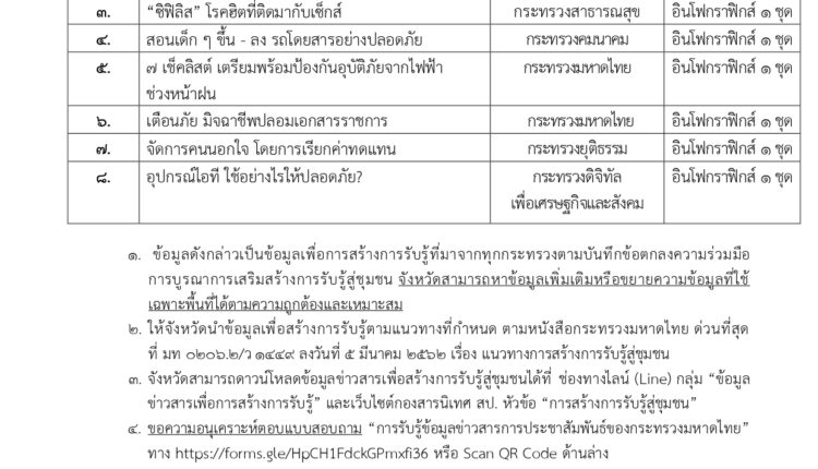 • ข้อมูลข่าวสารเพื่อสร้างการรับรู้สู่ชุมชน ครั้งที่ 30/2567
