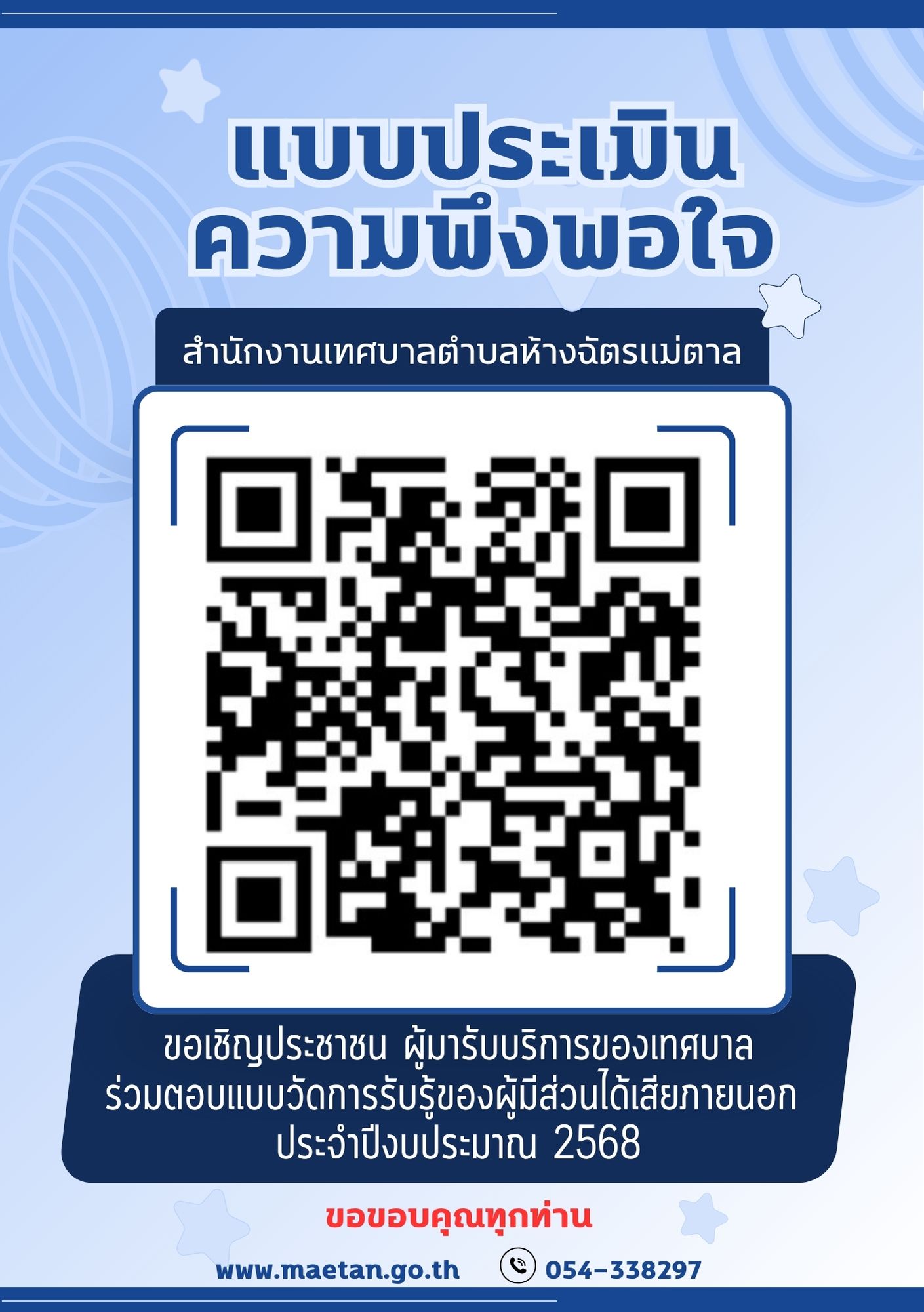 ขอเชิญประชาชน ผู้มารับบริการของเทศบาล ร่วมตอบเเบบวัดการรับรู้ของผู้มีส่วนได้เสียภายนอก ประจำปีงบประมาณ 2568