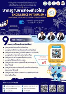 ขอเชิญสถานประกอบการด้านการท่องเที่ยว เข้าร่วมการอบรมเพื่อเตรียมความพร้อมเข้าสู่การตรวจประเมินมาตรฐานการท่องเที่ยวไทย ประจำปี 2568