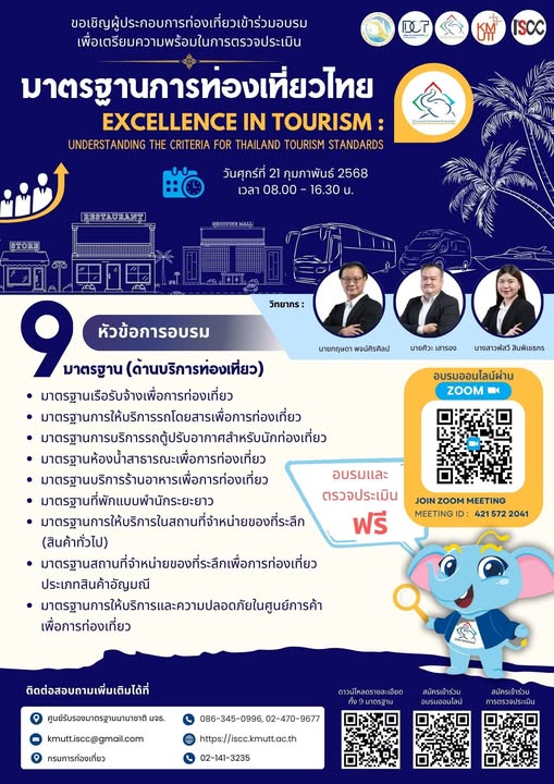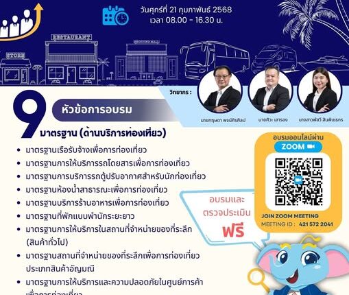 ลงทะเบียนเข้าร่วมอบรมออนไลน์มาตรฐานการบริการท่องเที่ยว ประจำปี 2568