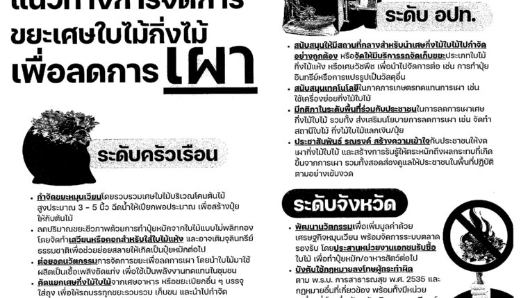 • เเนวทางการจัดการขยะเศษใบไม้เพื่อลดการเผา