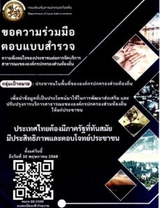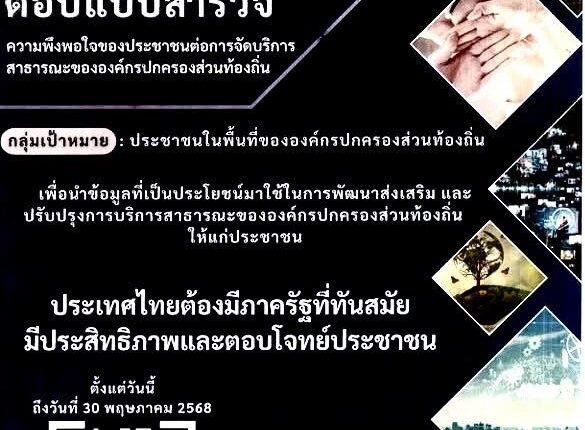 ขอความร่วมมือตอบแบบสำรวจ ข้อมูลความพึงพอใจของประชาชนต่อการจัดบริการสาธารณะขององค์กรปกครองส่วนท้องถิ่น